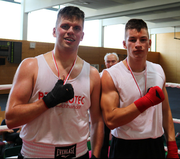 Alexander Herklotz (links) und Noah Peilstöcker (rechts), lieferten sich den ersten vereinsinternen Sparringskampf im Superschwergewicht. Beide haben über 3 Runden mit jeweils 3 Minuten hervorragendes Boxen gezeigt und beide sind als Gewinner aus dem Ring gegangen.