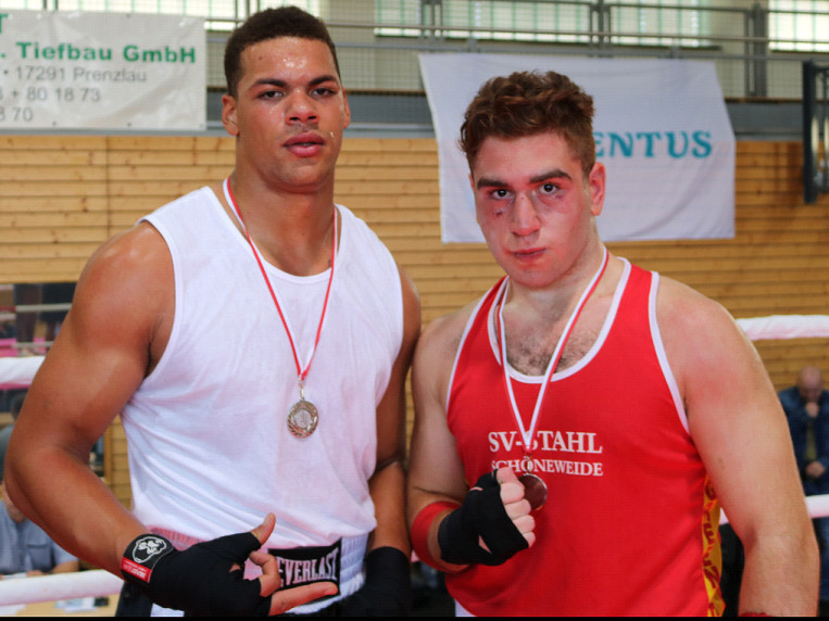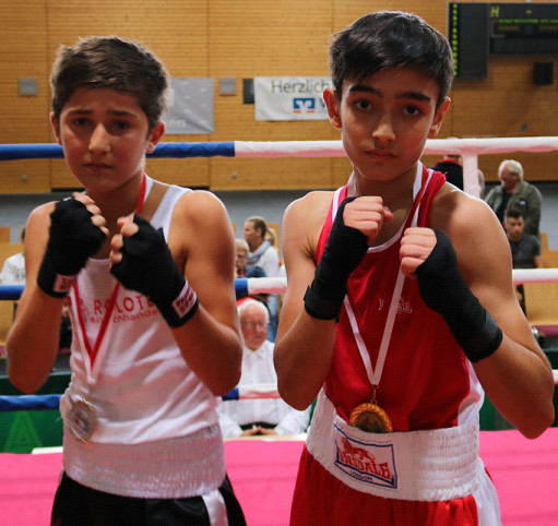 Im dritten Kampf trat Adam Dadarov (links) gegen Ahmad Bahaduri (rechts) vom SV Lichtenberg an. Adam ließ keinen am und im Ring an seinem Siegeswillen zweifeln. Mit einer konditionell und technisch sehr guten Leistung zeigte Adam, was er gelernt hat und gewann die Goldmedaille. Auch hier gehen sportliche Glückwünsche an die beiden Boxer.
