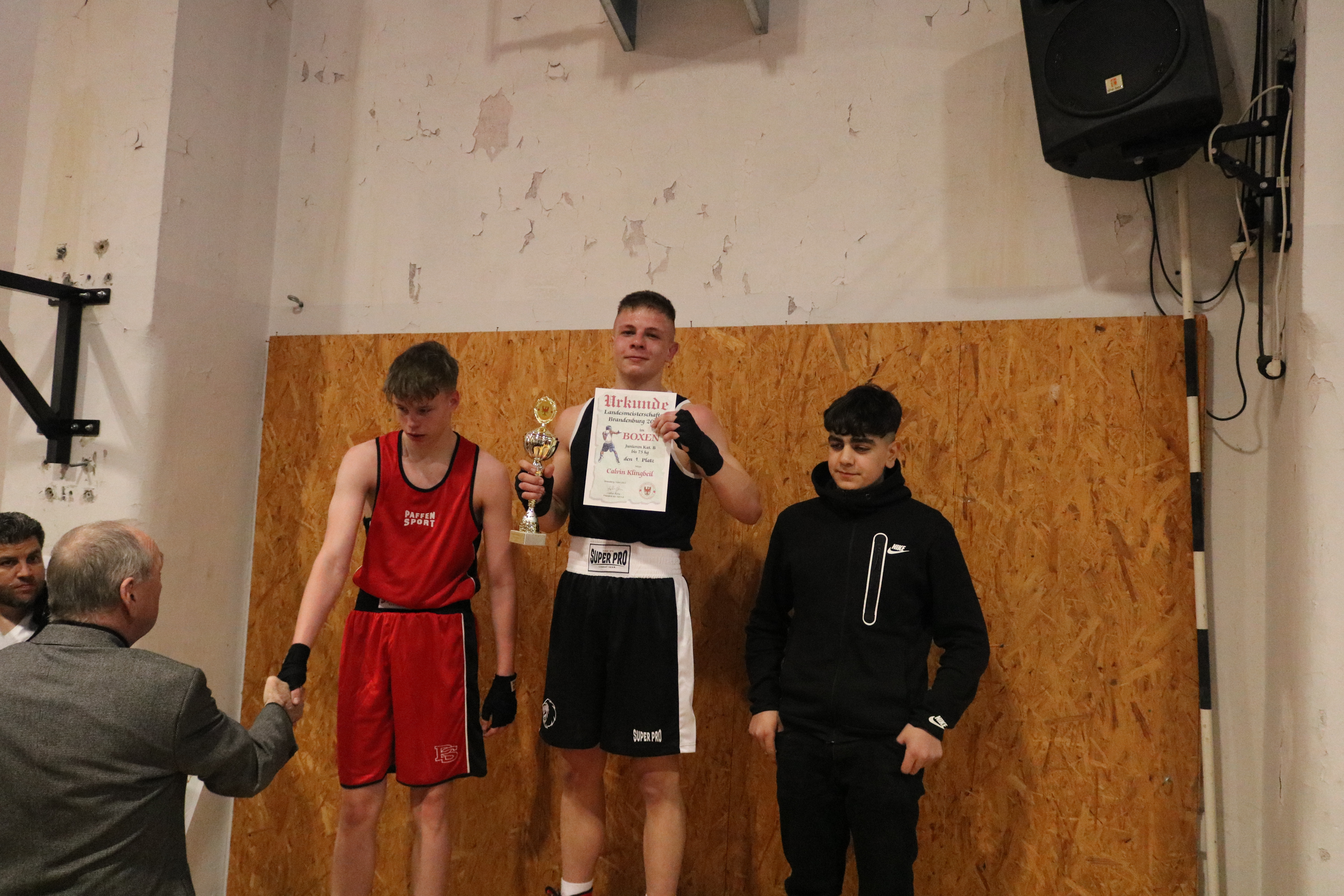 Calvin konnte sich innerhalb der ersten 45 Sekunden, der ersten Runde gegen seinen Gegener des Oranienburger BC im sogenannten Halbfinale der Landesmeisterschaften im Boxen durchsetzen. Der Ringrichter konnte den Willen zum weiterkämpfen von Jad, nach unzähligen Treffern nicht mehr erkennen und brach den Kampf vorzeitig ab. Damit hat sich Calvin einen Platz im Finale gesichert und wird sich seinen Landesmeister erkämpfen müssen.