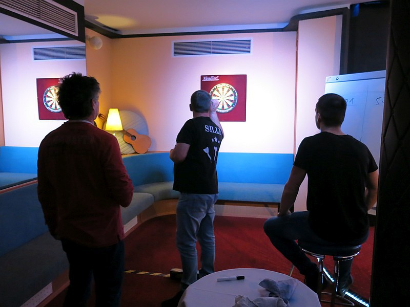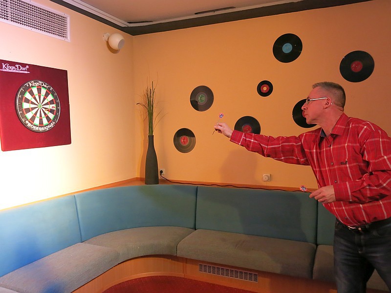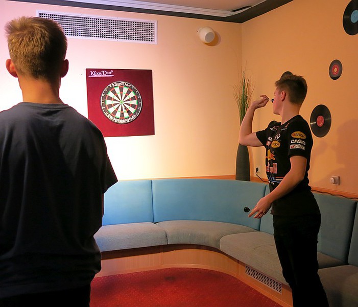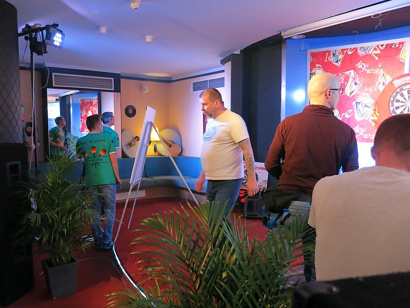 An den Start um 18:00 Uhr gingen gut 40 Teilnehmer, von denen etliche sogar aus größerer Entfernung wie Angermünde, Woldegk und Hintersee angereist waren. Auch etwa zwei Dutzend Zuschauer hatten sich in der Hotelbar eingefunden, um in geselliger Runde die Wettkämpfe zu verfolgen. Gespielt wurde auf drei Scheiben im Doppel-KO-System, dass heißt, eine einmalige Niederlage führt noch nicht zum Turnieraus. So ist sichergestellt, dass auch ohne Setzen die aussichtsreichsten Spieler das Finale erreichen können. Gelungen ist das diesmal Marcel Wegner aus Hintersee und Kay Borchwald von Rot-Weiß Prenzlau. Hier schickte Marcel Wegner dann die besseren Pfeile in Richtung Dartscheibe und entschied das Turnier am Ende für sich.