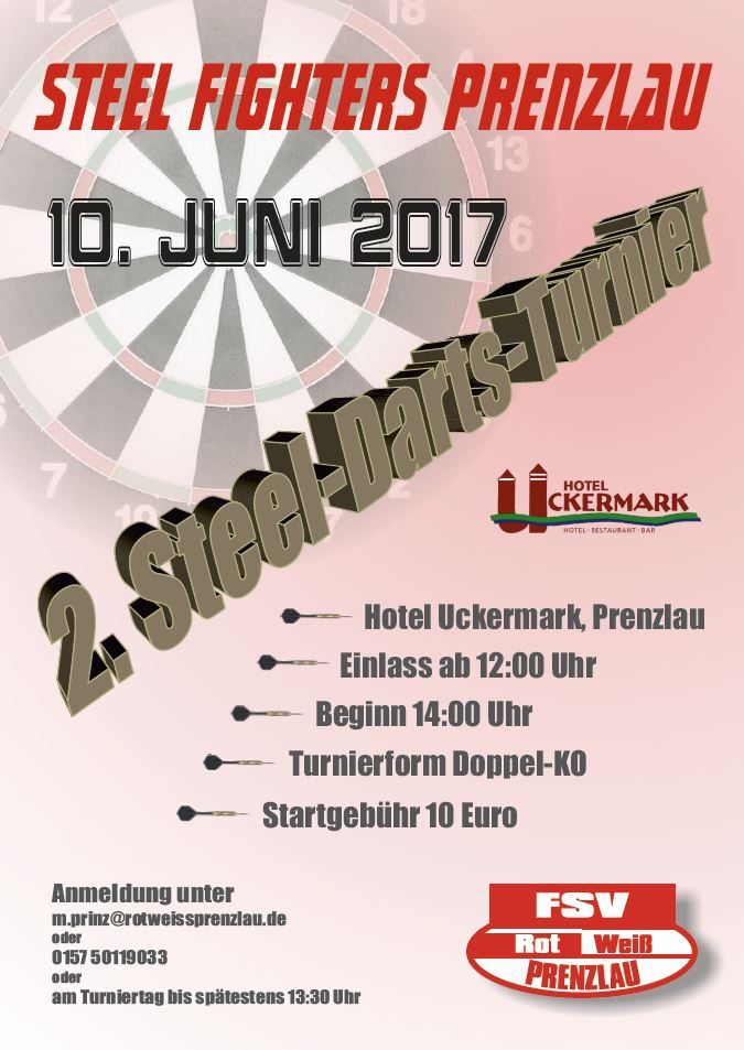 Austragungsort wird wiederum das Hotel Uckermark sein. Die Hotelleitung stellt uns freundlicherweise wieder die Räumlichkeiten in der Bar zur Verfügung. Einlass wird ab 12:00 Uhr sein und ab 14:00 Uhr ist offizieller Turnierbeginn.