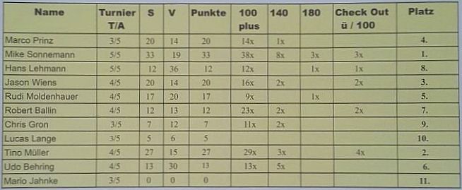 Hier die aktuelle interne Rangliste der Darts-Abteilung: