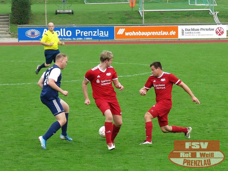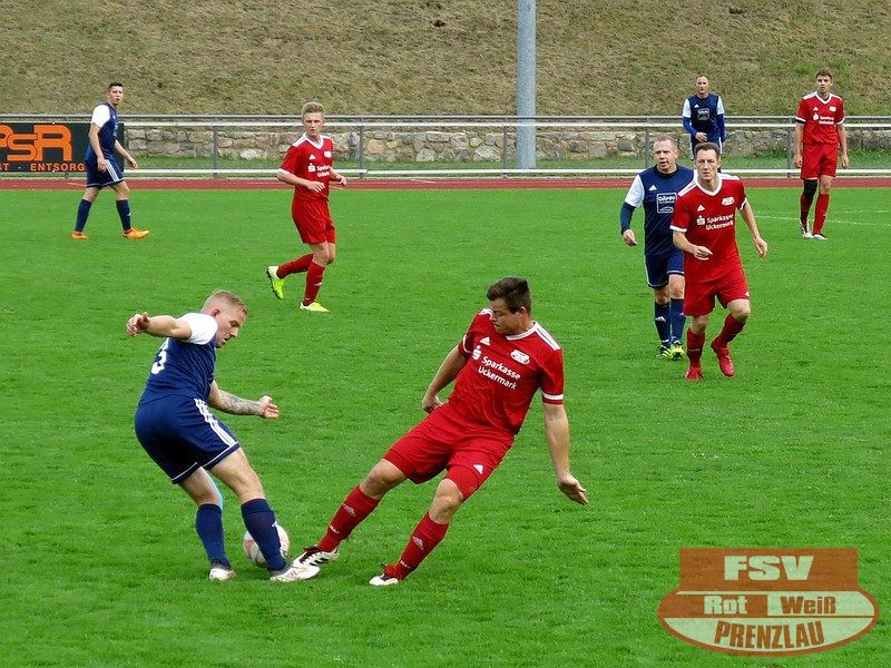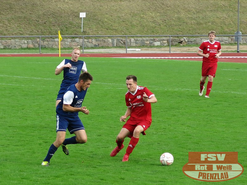 Während das Spiel in der ersten Hälfte noch relativ ausgeglichen verlief, beschäftigte Prenzlau/Dedelow die Gäste mehr und mehr in der eigenen Hälfte. Doch auch hier wieder das gleiche Dilemma - die Chancenverwertung und ein gut reagierender Gästetorhüter, z.B. in Minute 52, als er einen Schuss von Christoph Schmidt gerade noch so über die Latte lenken konnte. Auch weitere Chancen blieben ungenutzt und das rächte sich in der 83. Minute, als Trezwinski bei einem der seltenen Göritzer Vorstöße der Abwehr auf der linken Seite entwischte und am Prenzlauer Torhüter vorbei ins lange Eck einschieben konnte. Viel Zeit blieb dem Gastgeber nicht mehr, doch fast im Gegenzug gelang der umjubelte Ausgleich zum 2:2. Jeromé Schulz hatte sich wohl die Szene vorher genau angesehen und machte es fast genau so nach, nur diesmal von der rechten Seite. Kurz vor Schluss noch einmal eine ähnliche Situation, doch diesmal konnte der Torhüter Jerrys Schuss aus spitzerem Winkel noch zur Ecke klären.