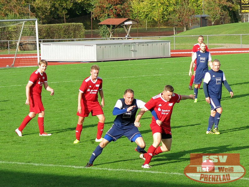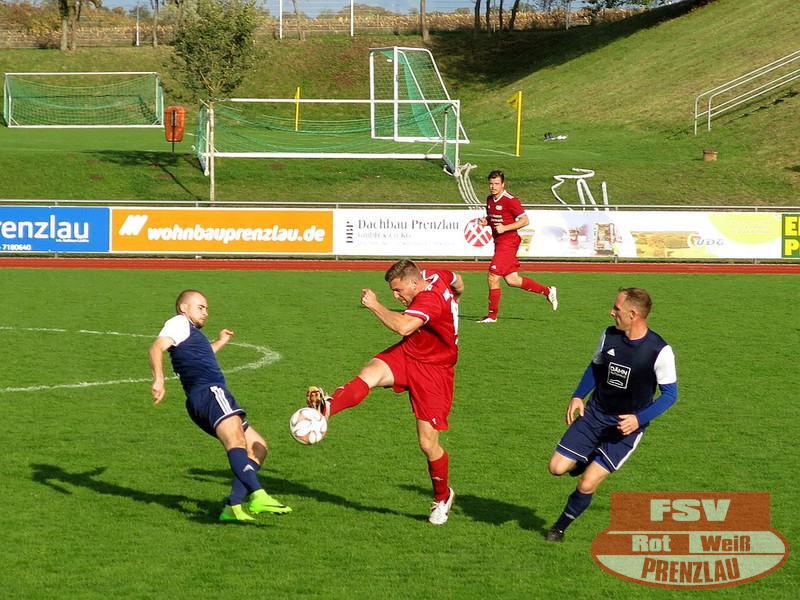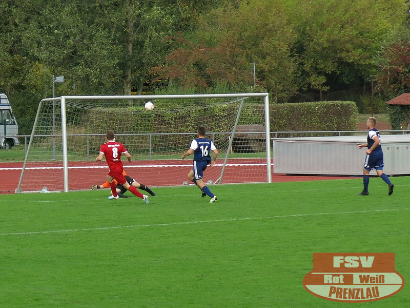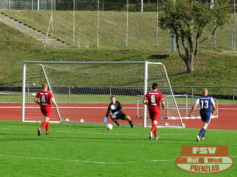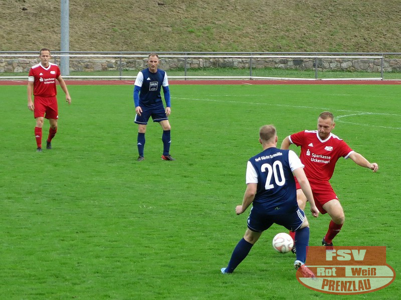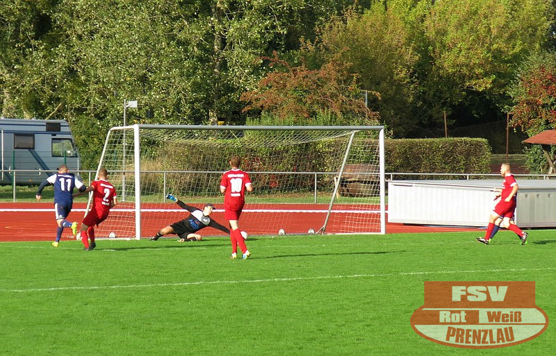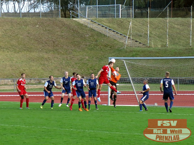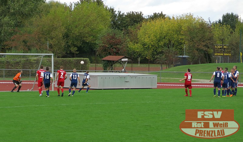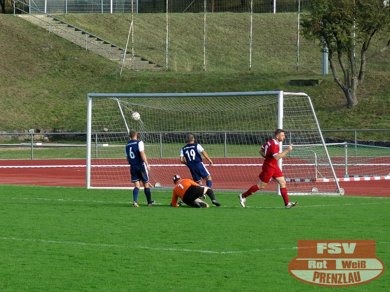 Am 6. Spieltag traf unsere "Erste" daheim auf die SpG Göritz/Schmölln, die zur Zeit auf einer Erfolgswelle schwimmt und ihre letzten vier Punktspiele gewinnen konnte. Entsprechend begann das Spiel diesmal mit umgekehrten Vorzeichen, statt wie vom FSV zuletzt häufig demonstriert, legte diesmal der Gegner eine schnelle Führung hin. Toni Lucht visierte außerhalb des Strafraums das lange Eck an, der Ball setzte vor dem Torhüter noch einmal auf dem nassen Rasen auf und landete im Tor. Es dauerte dann bis zur 23. Minute, als Matthias Hein zum Freistoß antrat und diesen absolut sehenswert über die Mauer hinweg im Tor platzierte. Im weiteren Verlauf entwickelte sich allerdings eine Partie, in der man spielerische Momente mit der Lupe suchen musste. Das Match lebte eher von den Fehlern bei Ballannahmen und Abspielen. Auffallend auch in diesem Spiel - der Gastgeber erarbeitete sich wieder eine ganze Reihe bester Chancen, die wie im Spiel gegen Schwedt nicht genutzt wurden. So musste man sich mit dem 1:1 zur Halbzeitpause begnügen.