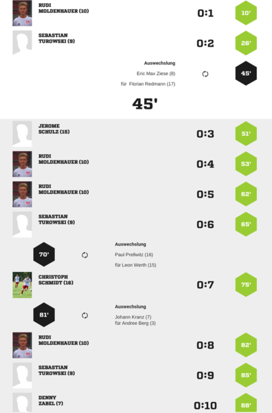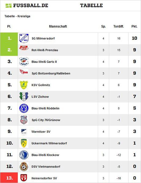 Das Spitzenspiel in der Kreisliga fand heute in Prenzlau statt - der FSV gegen den KSV Gollmitz. Beide noch ohne Punktverlust, der KSV auf Tabellenplatz zwei, der FSV auf drei mit einem Spiel Rückstand. Das erwartete Spitzenspiel tendierte aber bereits nach kurzer Zeit wieder Richtung bekannte Szenerie, der FSV bestimmte das Spielgeschehen und die Gastmannschaft übte sich im Verteidigen. Das klappte allerdings nur bis zur 6. Minute, als nach einem Gewühl im Strafraum der Ball fast geklärt schien, aber dann plötzlich doch Michael Kraft frei vorm Tor stand und einschieben konnte. Drei weitere Tore zum 4:0 Halbzeitstand steuerten Christoph Schmidt und zweimal Florian Redmann bei, wobei der Gollmitzer Torhüter bei Florians zweitem Treffer kräftig mithalf, als ihm ein strammer Schuss von Christoph Schmidt durchflutschte und Florian vollenden konnte. Gollmitzer Angriffe fanden nur sporadisch in Form von Kontern statt.