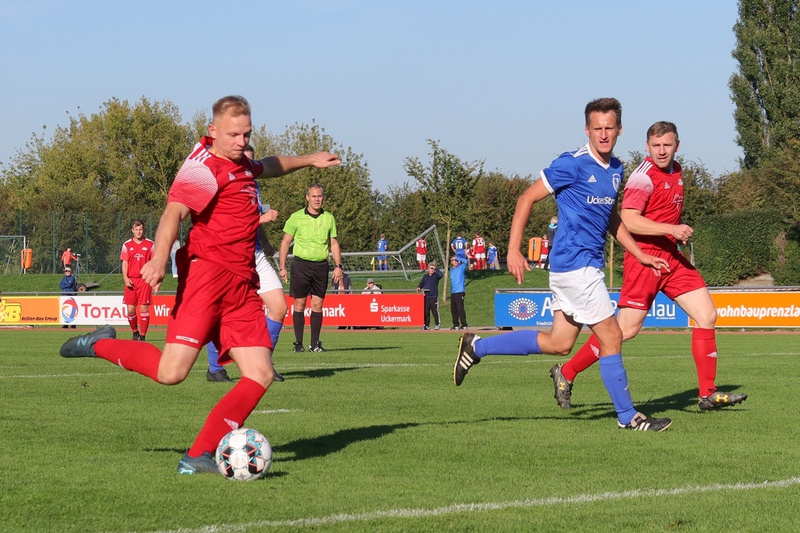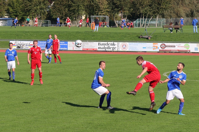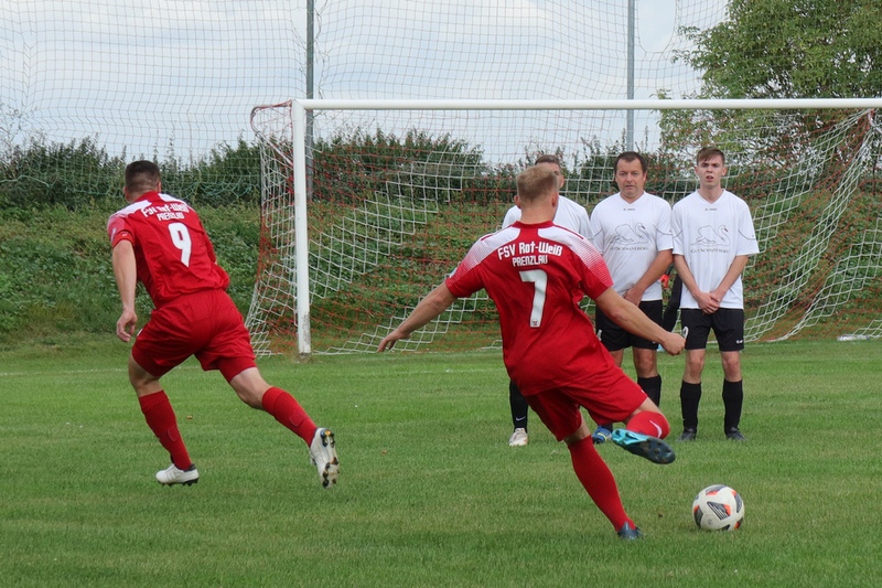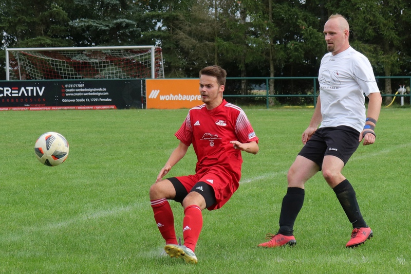 Bis zum Ende der Saison 2019/20 noch vereint als Spielgemeinschaft, ergab die Auslosung für das Achtelfinale nun im "Oberen Lübzer Kreispokal" das Aufeinandertreffen beider Mannschaften. Prenzlau dank einiger widriger Umstände noch immer in der Kreisliga unterwegs, galt bei vielen dennoch als Favorit in dieser Begegnung gegen den Kreisoberligisten. Die ersten zehn Minuten ergaben auch das schon gewohnte Bild, Ballbesitz überwiegend für Rot-Weiß, allerdings keine Gefahr bei Torschüssen. Dafür nach elf Minuten das erste Mal Tohuwabohu vor dem Prenzlauer Tor. Lucas Lehmann konnte von Alex Fischer im letzten Moment am präzisen Torschuss gehindert werden.