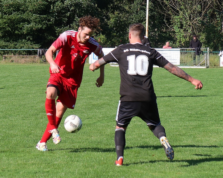 Der im Vorbericht auf fussball.de angekündigte "Giganten-Gipfel" wurde es dann doch nicht und auch das Prädikat Spitzenspiel traf nur phasenweise zu. In der Anfangsphase legte der FSV los wie die Feuerwehr und bereits in Minute 3 konnte Florian Redmann eine Flanke von rechts aus kurzer Distanz per Kopf im Milmersdorfer Tor unterbringen. Auch danach sahen die Gastgeber erst einmal die rot-weißen Wellen auf sich zukommen, hielten ihren Kasten aber dicht. Nach etwa 20 Minuten wurde das FSV-Spiels deutlich statischer und die Milmersdorfer machten sich nun auch ab und an auf den Weg Richtung FSV-Tor, allerdings ohne wirkliche Gefahr zu erzeugen. Deutlich bessere Möglichkeiten boten sich dem FSV, wie der Lattentreffer nach 40 Minuten. Zur Halbzeit blieb es bei der knappen, aber jederzeit verdienten 1:0 Führung.