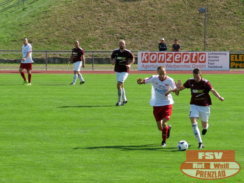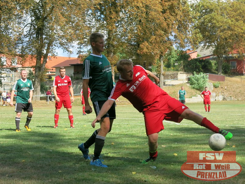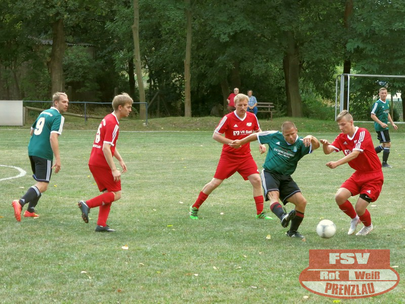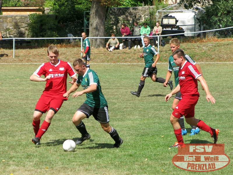 Das war ein Auftakt nach Maß, nach dem 2:1 Sieg im Pokalspiel folgte heute zum Saisonauftakt ein deutlicher 4:0 Erfolg gegen die Zweite von Einheit Grünow. Dabei sah es in der ersten Halbzeit so gar nicht danach aus. Zwar gab es einige Chancen auf beiden Seiten, aber irgendwie fehlte der richtige "Biss" im Spiel. So blieb es bis zum Pausenpfiff torlos. Unabhängig davon lief das gesamte Spiel in - nennen wir es mal - angespannter Atmosphäre ab, eigentlich wie gewohnt bei Grünower Auftritten. Zu Beginn der zweiten Halbzeit dann die Erlösung. Ein Doppelschlag innerhalb von 2 Minuten durch A. Mante (50.) und S. Turowski (52.) ließ das Spiel in Richtung der Rot-Weißen kippen. Prenzlau traute sich immer mehr zu und es gelangen durchaus sehenswerte Aktionen nach vorne. Das dabei zwei verheißungsvolle Aktionen wegen vermeintlichem Abseits abgepfiffen wurden, kann man dem Schiedsrichter nicht ankreiden. Ohne Assistenten an der Seite sind solche Situationen nie hundertprozentig zu beurteilen. Grünow kam mit Ablauf der Spielzeit immer weniger zu eigenen Gelegenheiten, dafür erhöhte Prenzlau durch Tore von D. Holz (68.) und Ch. Schmidt (71.) auf den Endstand von 4:0. Fazit des ersten Punktspiels - nach zähem Beginn zum Ende hin doch noch eine klasse Leistung, so zwar von vielen erhofft aber nicht unbedingt vorauszusetzen.