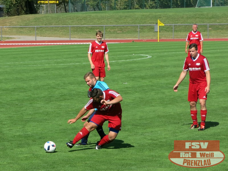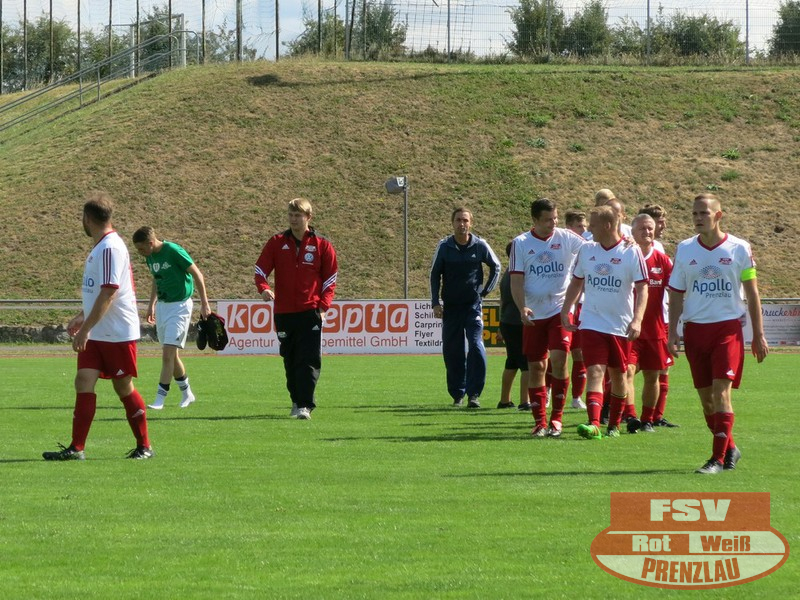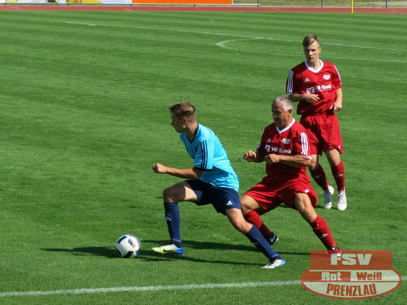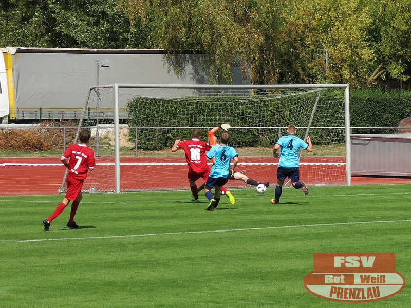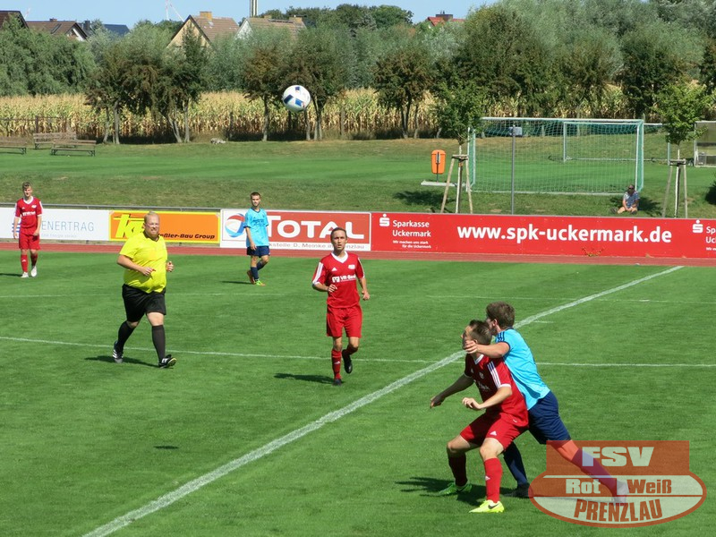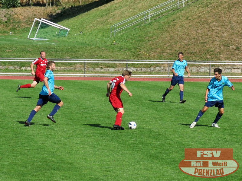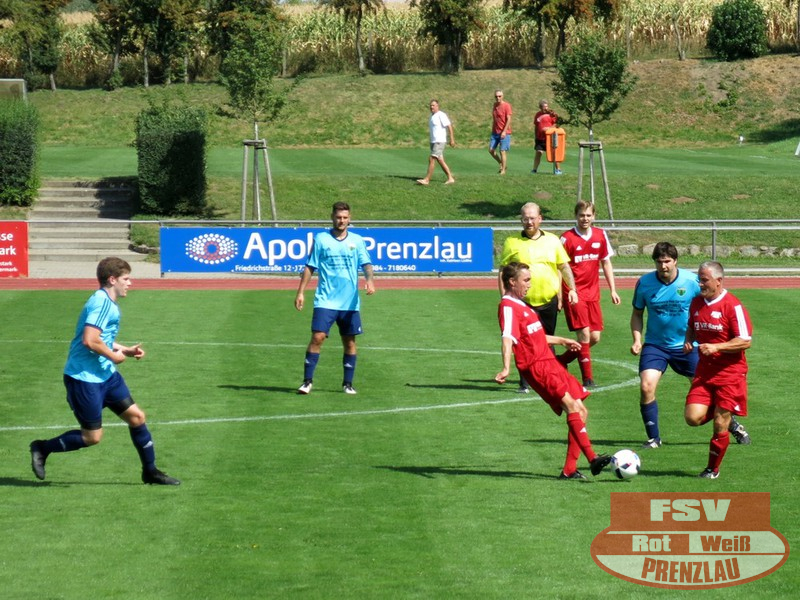 In der zweiten Halbzeit nahm der Druck der Gramzower immer mehr zu und so fiel in Minute 55 der verdiente Ausgleich. Eine Minute später Glück für Prenzlau. Es gab Strafstoß für Gramzow, der aber flog weit über das Tor. Prenzlau weiterhin im wesentlichen mit der eigenen Abwehr beschäftigt, dann aber in der 71. Minute der Antritt von Jeromé Schulz. Praktisch von der Mittellinie zog er Richtung gegnerisches Tor, umspielte den Torhüter und schob locker in's leere Tor ein. In den letzten Spielminuten drängte Gramzow auf den Ausgleich, Prenzlau kam kaum noch aus dem eigenen Strafraum heraus. In der Nachspielzeit noch einmal Riesenglück für Prenzlau - ein strammer Schuss knallte nur an den Pfosten. Dann passierte nichts mehr, es blieb beim 2:1 und dem Einzug in die nächste Pokalrunde.
