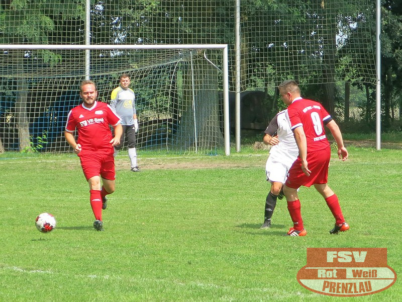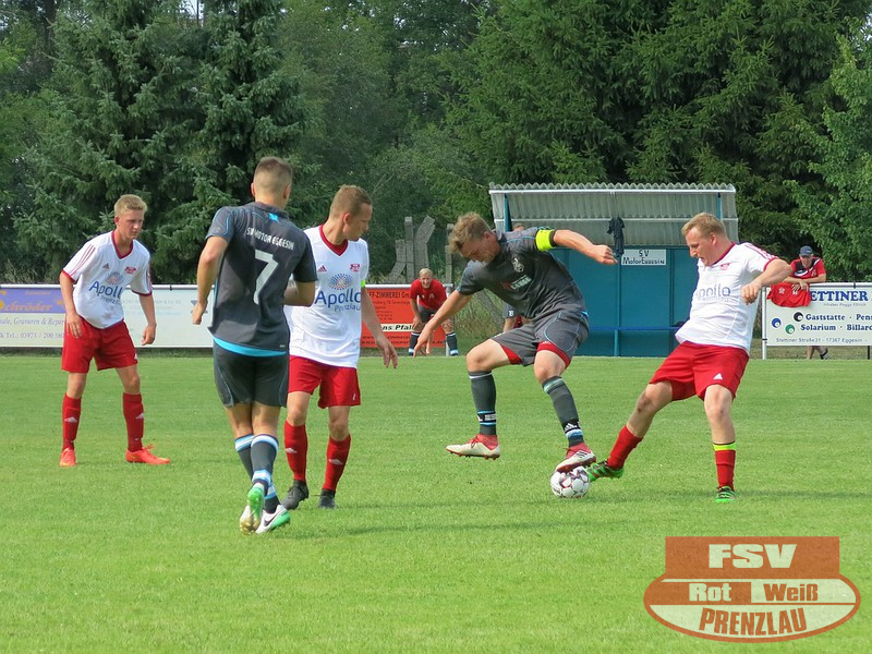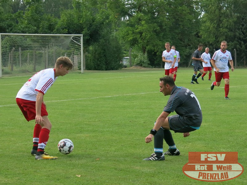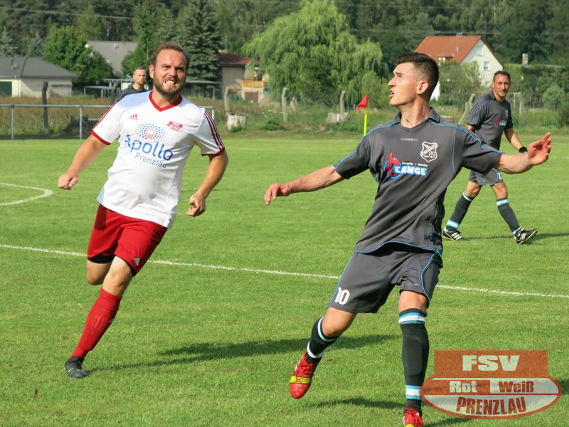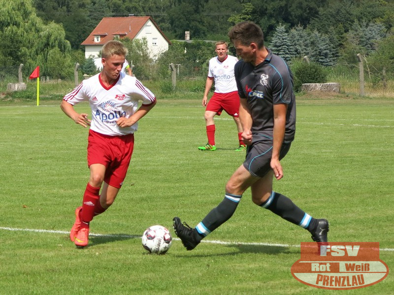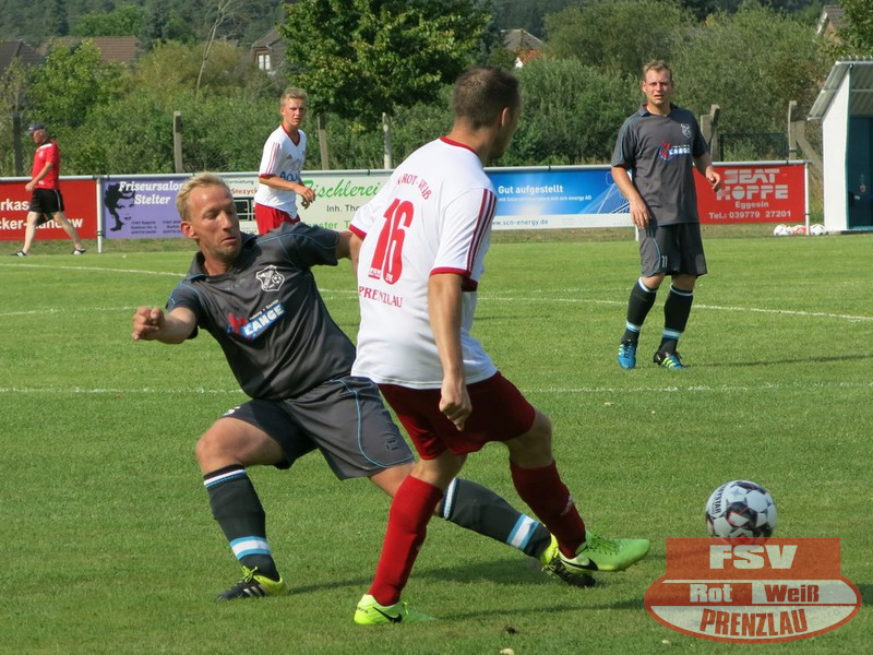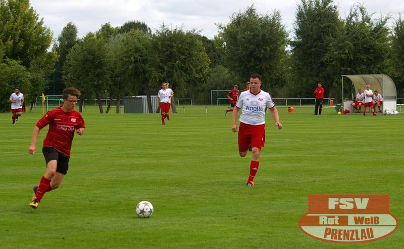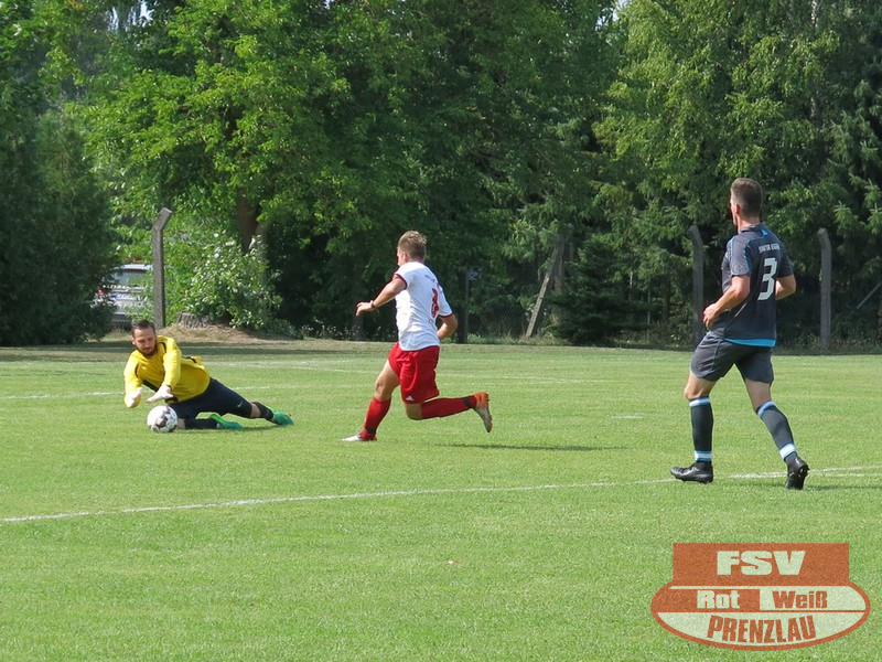 Am Sonnabend reisten die Männer um Trainer René Schilling zum zweiten Testspiel nach Eggesin. Gegenüber dem letzten Spiel in Rollwitz trat allerding eine personell stark veränderte Mannschaft an. Neben drei Jungs von den A-Junioren und dem Trainer gehörte auch Kai Michalak, der Torhüter der Altherren, zum Aufgebot. Trotz Temperaturen knapp über 30 Grad entwickelte sich ein flottes Spiel. Feldüberlegen und mit deutlich mehr Chancen präsentierte sich die Kreisoberliga-Mannschaft von Motor Eggesin. Prenzlau im gesamten Spiel eigentlich mit nur einem gefährlichen Abschluss, den der Eggesiner Torhüter aber noch über die Latte befördern konnte. Nach vorn lief relativ wenig, aber dafür machte die Abwehr ihre Sache wieder sehr gut und ließ diesmal keinen Gegentreffer zu. So stand am Ende ein respektables 0:0 zu Buche.