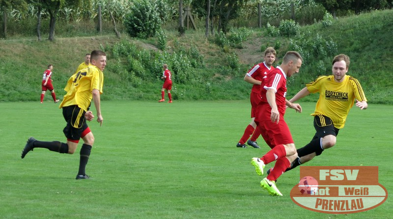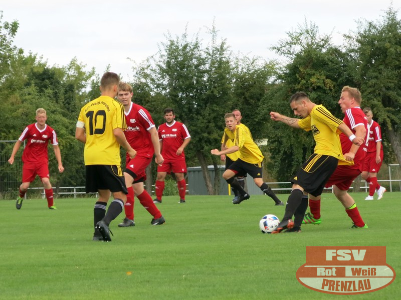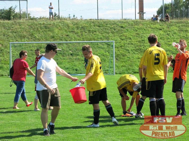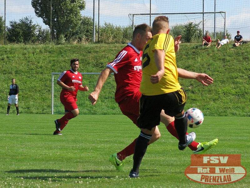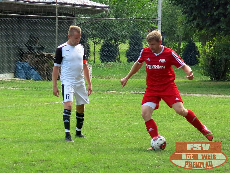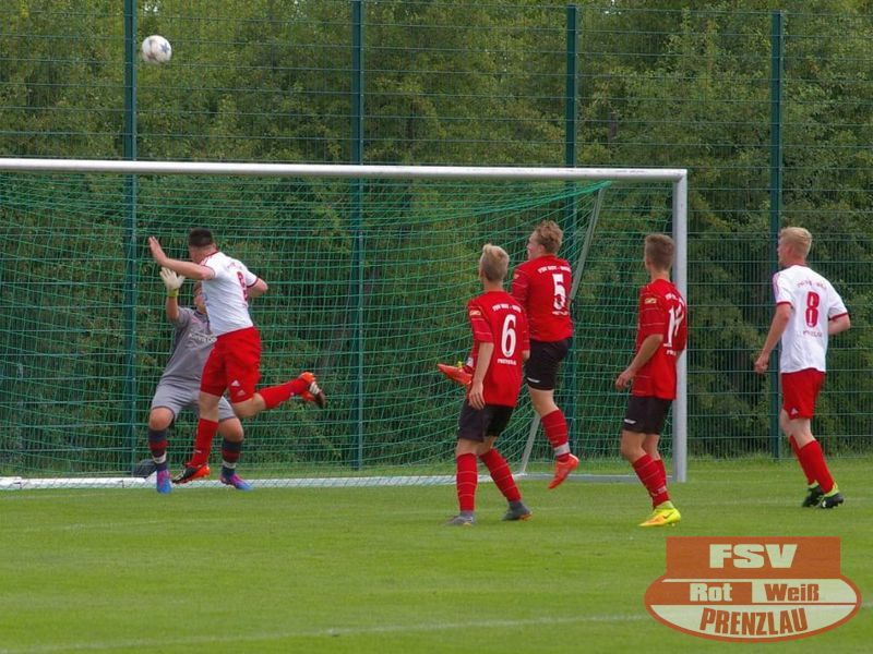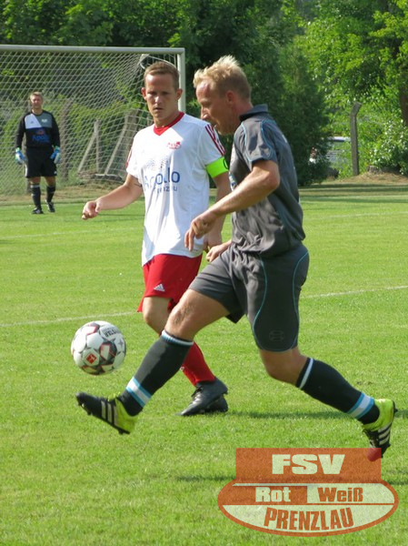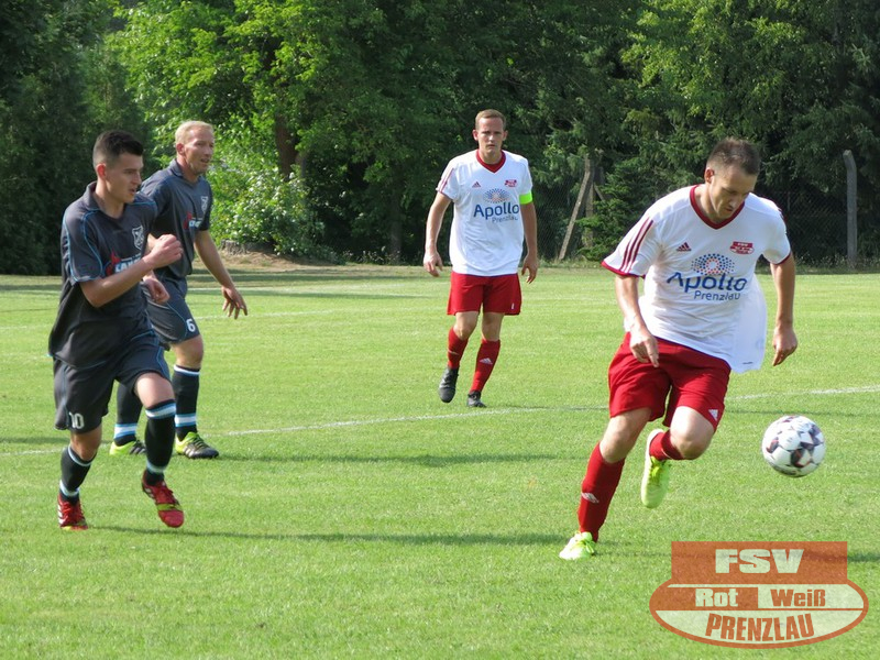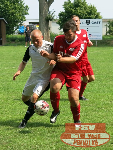 Am Sonnabend reisten die Männer um Trainer René Schilling zum zweiten Testspiel nach Eggesin. Gegenüber dem letzten Spiel in Rollwitz trat allerding eine personell stark veränderte Mannschaft an. Neben drei Jungs von den A-Junioren und dem Trainer gehörte auch Kai Michalak, der Torhüter der Altherren, zum Aufgebot. Trotz Temperaturen knapp über 30 Grad entwickelte sich ein flottes Spiel. Feldüberlegen und mit deutlich mehr Chancen präsentierte sich die Kreisoberliga-Mannschaft von Motor Eggesin. Prenzlau im gesamten Spiel eigentlich mit nur einem gefährlichen Abschluss, den der Eggesiner Torhüter aber noch über die Latte befördern konnte. Nach vorn lief relativ wenig, aber dafür machte die Abwehr ihre Sache wieder sehr gut und ließ diesmal keinen Gegentreffer zu. So stand am Ende ein respektables 0:0 zu Buche.