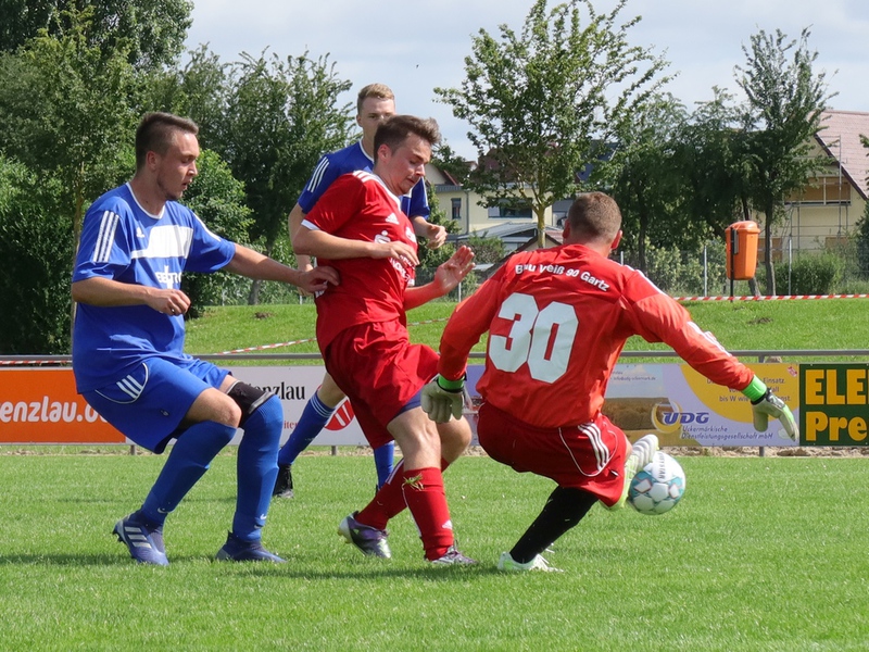 Nach rund neunmonatiger Unterbrechung durften wir nun die Zweite Gartzer Mannschaft im Viertelfinale des Unteren Lübzer Kreispokals empfangen. Natürlich lag die Favoritenrolle auf Seiten der Prenzlauer und die nahmen auch von Beginn an das Heft in die Hand. Das wurde auch belohnt, als Denny Zabel aus etwa 20m einfach mal eine Rakete zündete, die direkt unter dem Dach des Gartzer Tores einschlug.