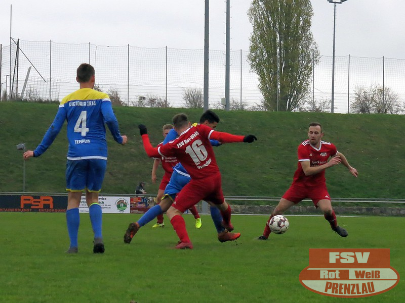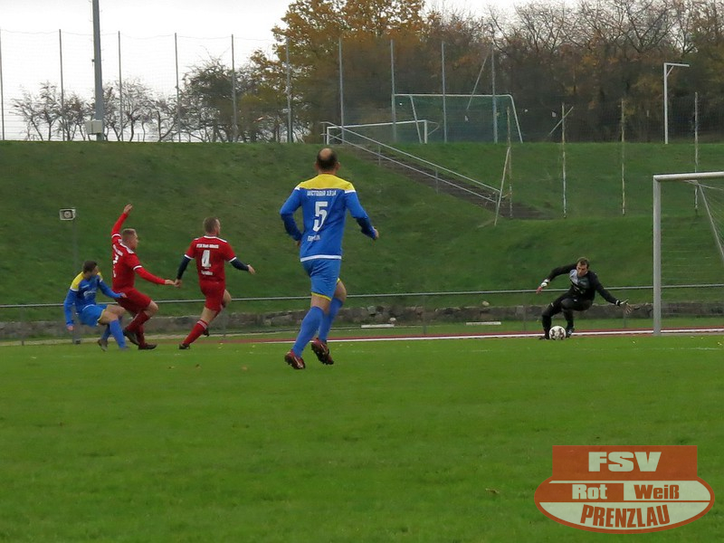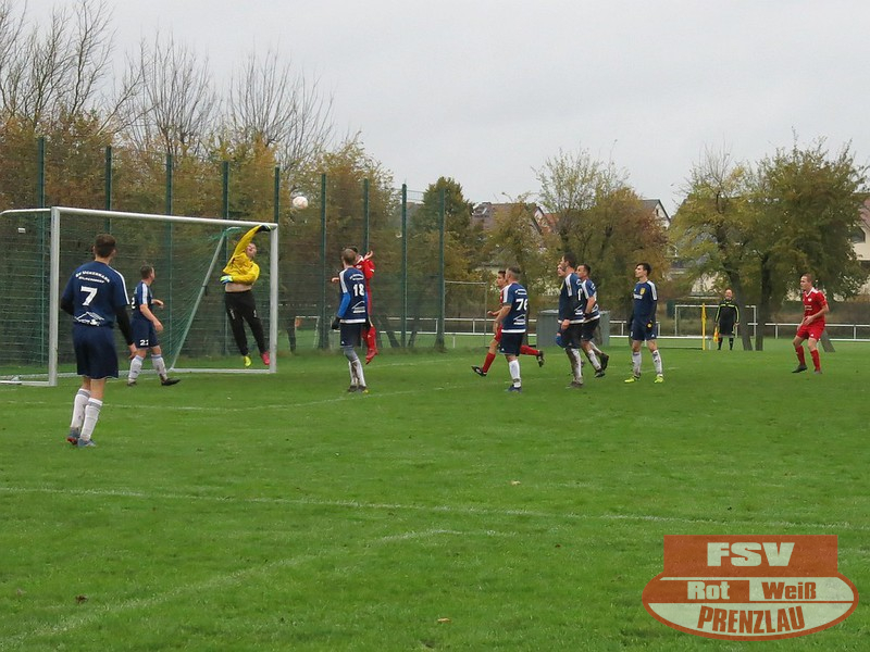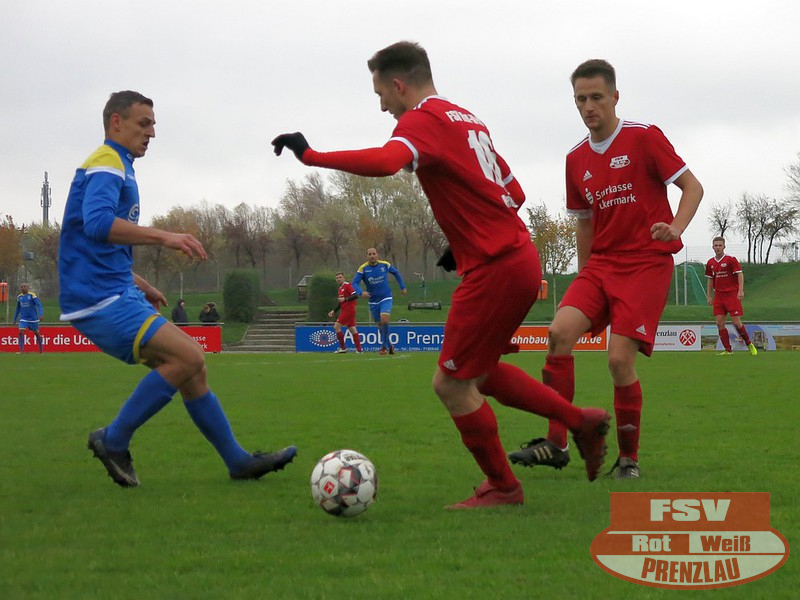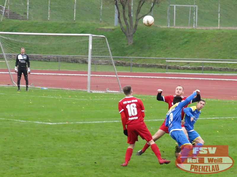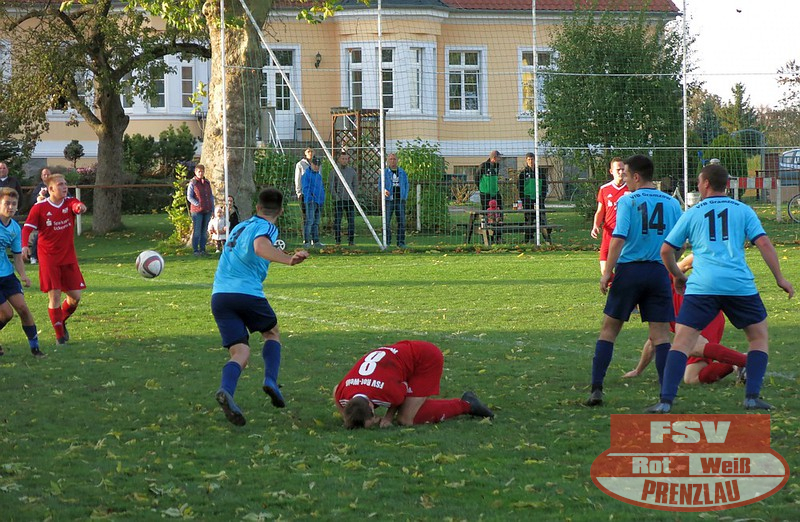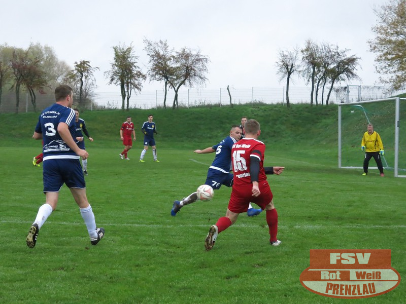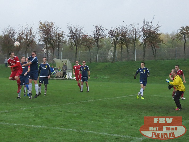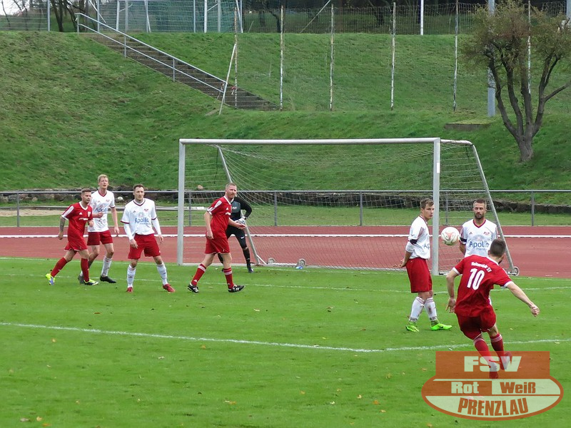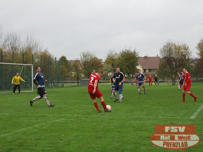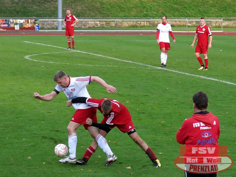 Die zweite Halbzeit begann ähnlich wie die erste. Templin, offensichtlich mit dem Ziel eine schnelle Vorentscheidung herbeizuführen, erst einmal im Vorwärtsgang. Die Rot-Weißen hielten aber dagegen und konnten das Spiel dann relativ ausgeglichen gestalten. Der Zug zum gegnerischen Tor blieb auf beiden Seiten relativ überschaubar. Doch dann kam die 67. Minute und das Desaster begann. Einen kompletten Aussetzer der Prenzlauer Hintermannschaft inklusive Torhüter nutzte der sicher noch bei vielen bekannte Robert Sikorski zur erneuten Templiner Führung. Dieser Gegentreffer bewirkte einen regelrechten Bruch im Spiel der Heimmannschaft. Man hatte den Eindruck, die Abwehr spielte jetzt nicht mehr den Pokalhit, sondern den Tango Dilettanti. Häufig wurde den Templiner Angreifern bei ihrer Arbeit und dem Ball bei seinem Weg durch den Strafraum nur staunend hinterher gesehen. Klärungsversuche misslangen zu oft und wurden dem Gegner postwendend in die Beine gespielt. Der Gast aus Templin brauchte nur noch auf die Fehler der Heimelf zu lauern und nutzte diese locker zu weiteren drei Treffern. Zwei davon überflüssigerweise in den letzten beiden Spielminuten. Zum Glück pfiff der Schiedsrichter die Begegnung pünktlich ab, denn die rot-weiße Abwehrarbeit strahlte schon einen leichten Hauch von Peinlichkeit aus.