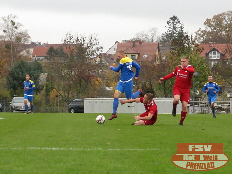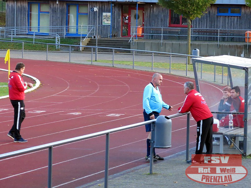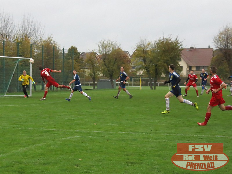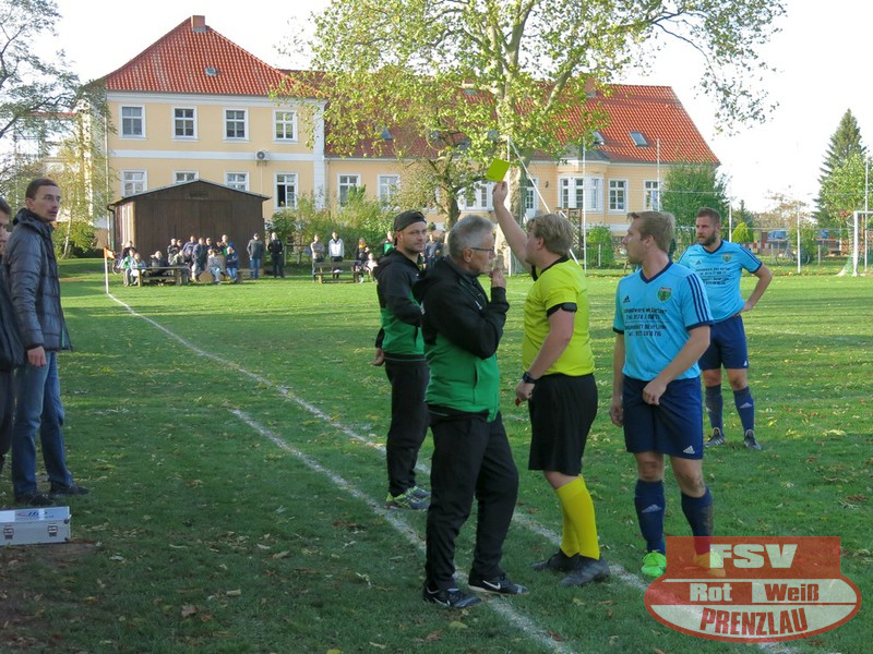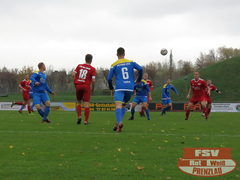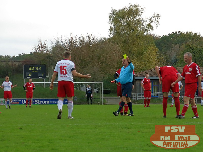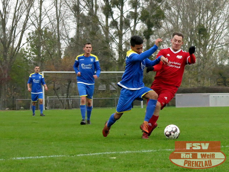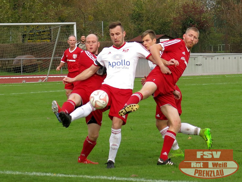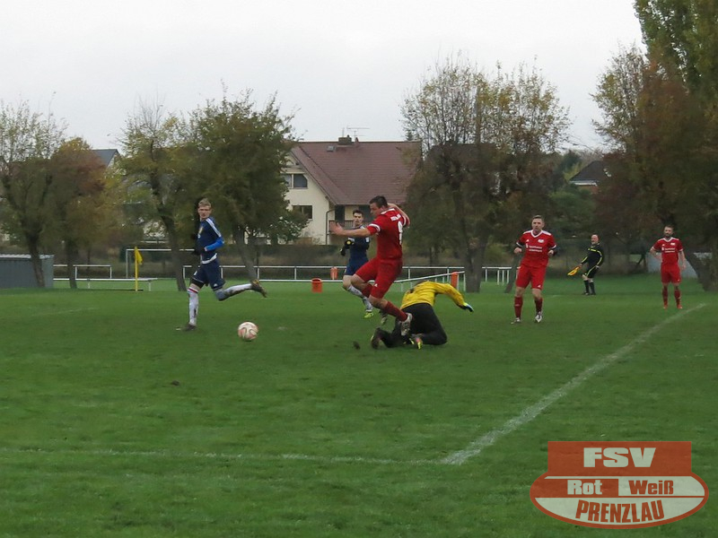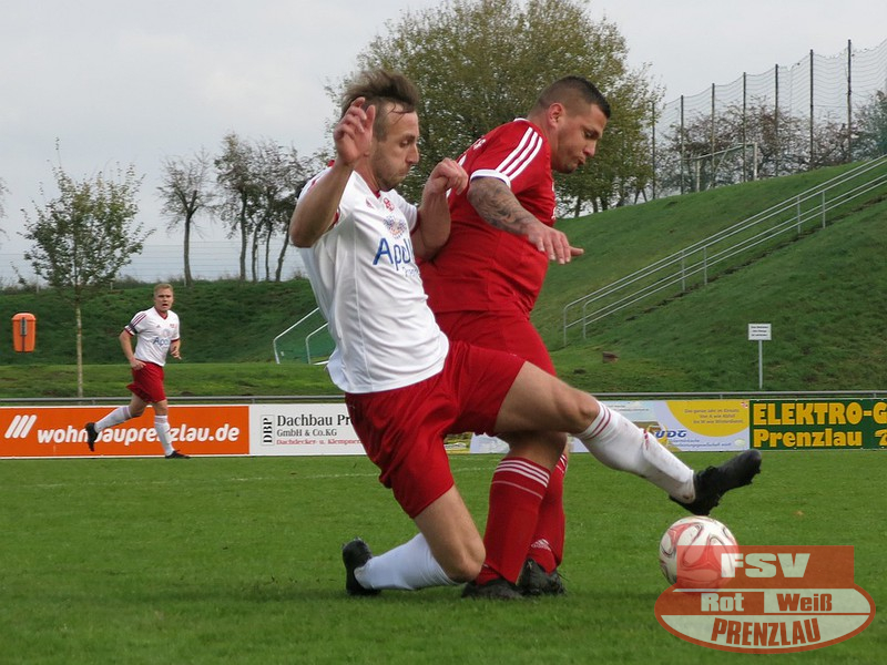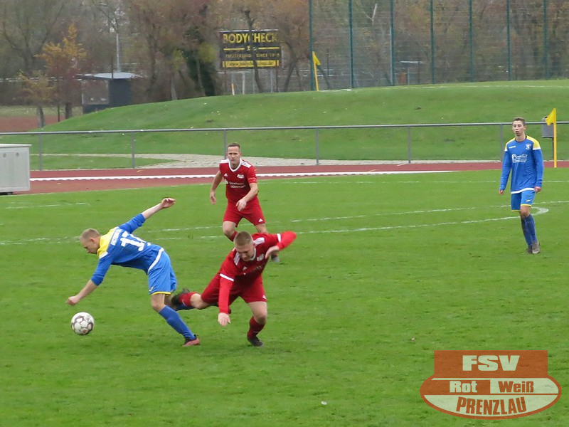 Die zweite Halbzeit begann ähnlich wie die erste. Templin, offensichtlich mit dem Ziel eine schnelle Vorentscheidung herbeizuführen, erst einmal im Vorwärtsgang. Die Rot-Weißen hielten aber dagegen und konnten das Spiel dann relativ ausgeglichen gestalten. Der Zug zum gegnerischen Tor blieb auf beiden Seiten relativ überschaubar. Doch dann kam die 67. Minute und das Desaster begann. Einen kompletten Aussetzer der Prenzlauer Hintermannschaft inklusive Torhüter nutzte der sicher noch bei vielen bekannte Robert Sikorski zur erneuten Templiner Führung. Dieser Gegentreffer bewirkte einen regelrechten Bruch im Spiel der Heimmannschaft. Man hatte den Eindruck, die Abwehr spielte jetzt nicht mehr den Pokalhit, sondern den Tango Dilettanti. Häufig wurde den Templiner Angreifern bei ihrer Arbeit und dem Ball bei seinem Weg durch den Strafraum nur staunend hinterher gesehen. Klärungsversuche misslangen zu oft und wurden dem Gegner postwendend in die Beine gespielt. Der Gast aus Templin brauchte nur noch auf die Fehler der Heimelf zu lauern und nutzte diese locker zu weiteren drei Treffern. Zwei davon überflüssigerweise in den letzten beiden Spielminuten. Zum Glück pfiff der Schiedsrichter die Begegnung pünktlich ab, denn die rot-weiße Abwehrarbeit strahlte schon einen leichten Hauch von Peinlichkeit aus.
