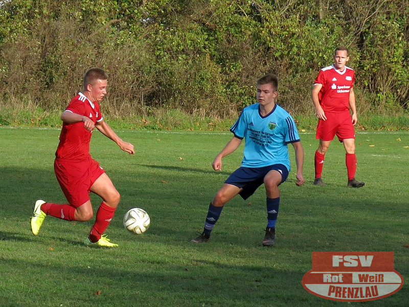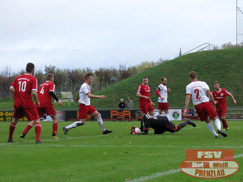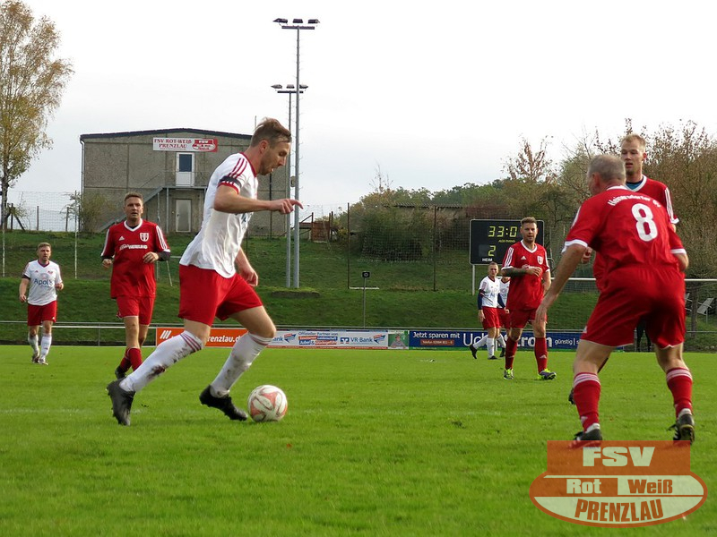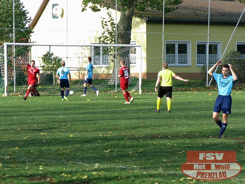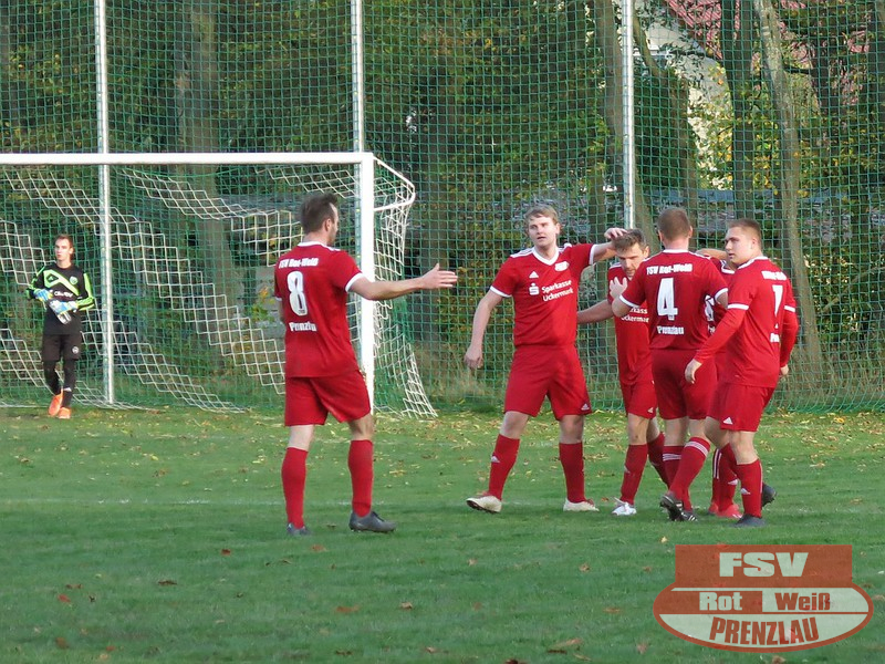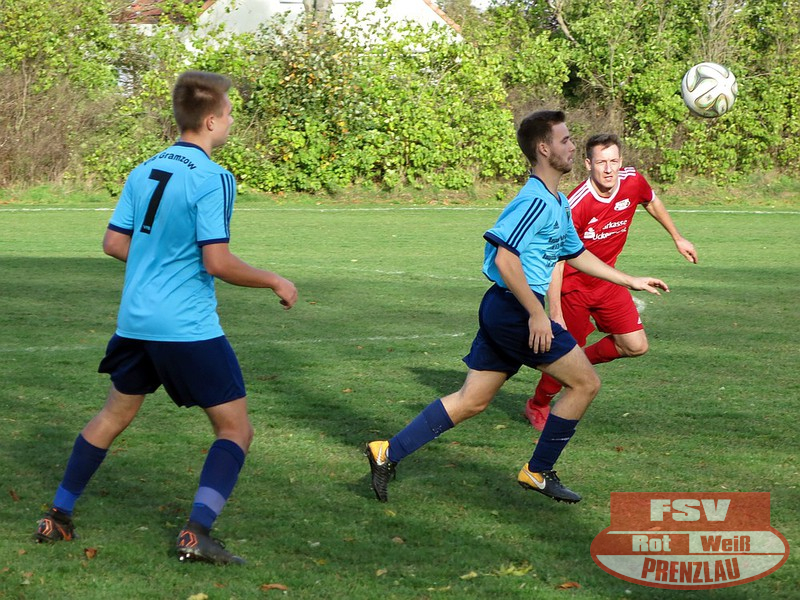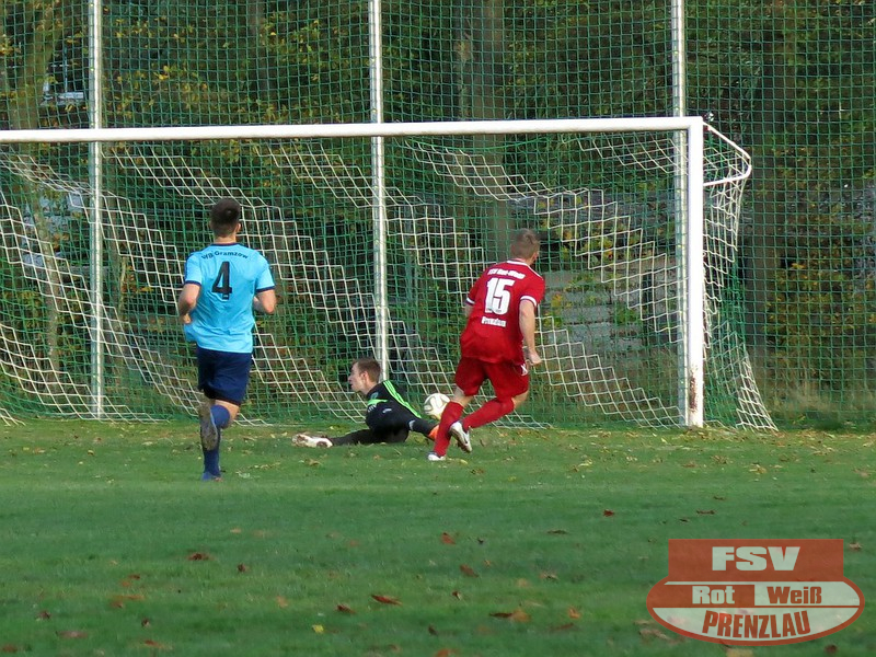 In der zweiten Halbzeit blieb der Gastgeber nach wie vor engagiert, konnte beim Abschluss aber nur unwesentlich mehr Gefahr erzeugen. Daher resultierte das einzige Gramzower Tor auch aus einem verwandelten Handelfmeter. Der Rest der Torschüsse wurden Opfer des Ballfangnetzes oder des auf der Linie wieder sehr gut reagierenden Udo Burmeister. Die Rot-Weißen verwalteten den Vorsprung und setzten weiter auf ihr Erfolgsrezept. mit langen Bällen ihre schnellen Angreifer in Szene zu setzen. So machte der Gast dann auch in der Nachspielzeit mit dem 4:1 den Deckel drauf. Nach dem Gewinn eines Zweikampfes in Höhe der Mittellinie zog Jeromé Schulz auf und davon und ließ dem Gramzower Keeper im direkten Duell keine Chance. In diesem Spiel hat unser Team endlich mal wieder die Chancen konsequent genutzt und wurde dafür mit drei Auswärtspunkten belohnt. Auf die Tabelle hat das noch keine großen Auwirkungen gehabt, mit aktuell Platz 9 heißt es weiter fleißig Punkte sammeln.