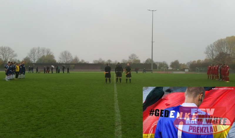 Doch bevor es losging, stellten sich die Mannschaften zur #gedENKEminute am Mittelkreis auf. Am Sonntag, dem 10. November, jährt sich der Tod von Robert Enke zum zehnten Mal. Aus diesem Anlass riefen der DFB und die Robert-Enke-Stiftung mit Unterstützung der DFL und in Zusammenarbeit mit den Regional- und Landesverbänden zu einer gemeinsamen Aktion des deutschen Fußballs auf. Im Rahmen der #gedENKEminute soll bei den Fußballspielen am Wochenende nicht nur an den Menschen und Sportler Robert Enke erinnert, sondern vor allem für die Volkskrankheit Depression und die vorhandenen Hilfsangebote sensibilisiert werden.