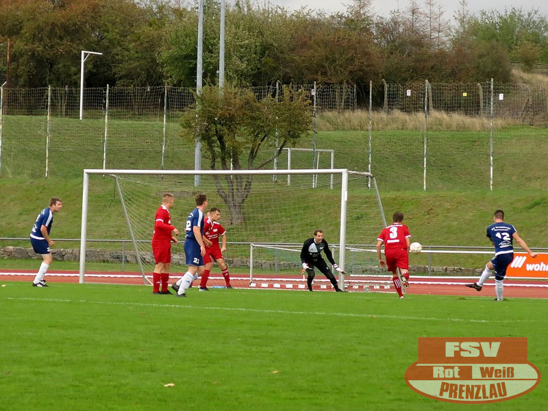 Am 6. Spieltag traf unsere "Erste" daheim auf die SpG Göritz/Schmölln, die zur Zeit auf einer Erfolgswelle schwimmt und ihre letzten vier Punktspiele gewinnen konnte. Entsprechend begann das Spiel diesmal mit umgekehrten Vorzeichen, statt wie vom FSV zuletzt häufig demonstriert, legte diesmal der Gegner eine schnelle Führung hin. Toni Lucht visierte außerhalb des Strafraums das lange Eck an, der Ball setzte vor dem Torhüter noch einmal auf dem nassen Rasen auf und landete im Tor. Es dauerte dann bis zur 23. Minute, als Matthias Hein zum Freistoß antrat und diesen absolut sehenswert über die Mauer hinweg im Tor platzierte. Im weiteren Verlauf entwickelte sich allerdings eine Partie, in der man spielerische Momente mit der Lupe suchen musste. Das Match lebte eher von den Fehlern bei Ballannahmen und Abspielen. Auffallend auch in diesem Spiel - der Gastgeber erarbeitete sich wieder eine ganze Reihe bester Chancen, die wie im Spiel gegen Schwedt nicht genutzt wurden. So musste man sich mit dem 1:1 zur Halbzeitpause begnügen.