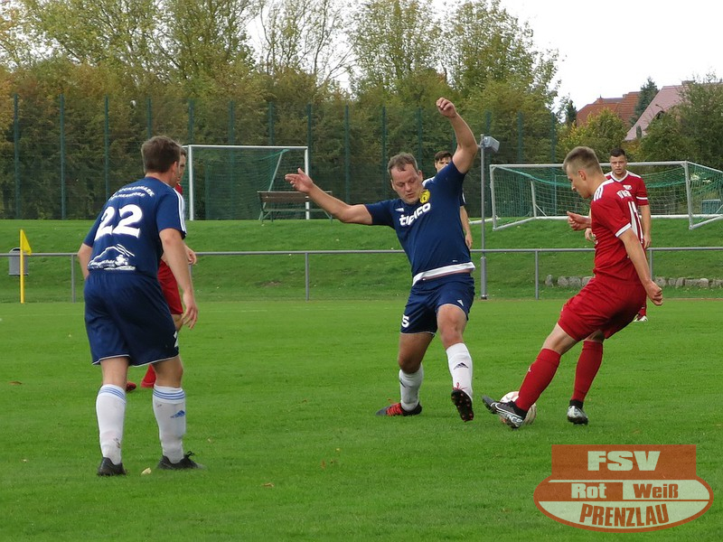 Auch nach dem heutigen Heimspiel gegen die SpG Parmen/ Fürstenwerder ging es wieder einen Tabellenplatz nach unten. Das 2:3 und damit die erste Heimniederlage in dieser Saison bedeutet mit Tabellenrang 9 auch gleichzeitig die schlechteste Saisonplatzierung. Dabei ließ sich das Spiel so schlecht gar nicht an. Der Gastgeber war bemüht, von Beginn an das Spiel zu gestalten, hatte auch etwas mehr Spielanteile, aber nennenswerte Torchancen waren auf beiden Seiten nicht zu verzeichnen. Das änderte sich dann nach gut 20 Minuten. Ein von Matthias Hein von der rechten Strafraumseite scharf auf das Tor gezogener und vom Torhüter gerade noch so parierter Freistoß, wirkte wie ein Wecksignal. Von da an war häufiger Gefahr beiderseits in den Strafräumen, allein die Tore wollten nicht fallen. Als sich schon alle darauf vorbereiteten, torlos in die Halbzeit zu gehen, fiel durch Markus Müller plötzlich doch das 1:0 für die Rot-Weißen. Allerdings konnte Parmen/Fürstenwerder im Gegenzug sofort mit dem Ausgleich antworten.