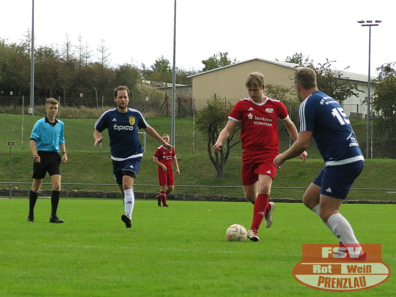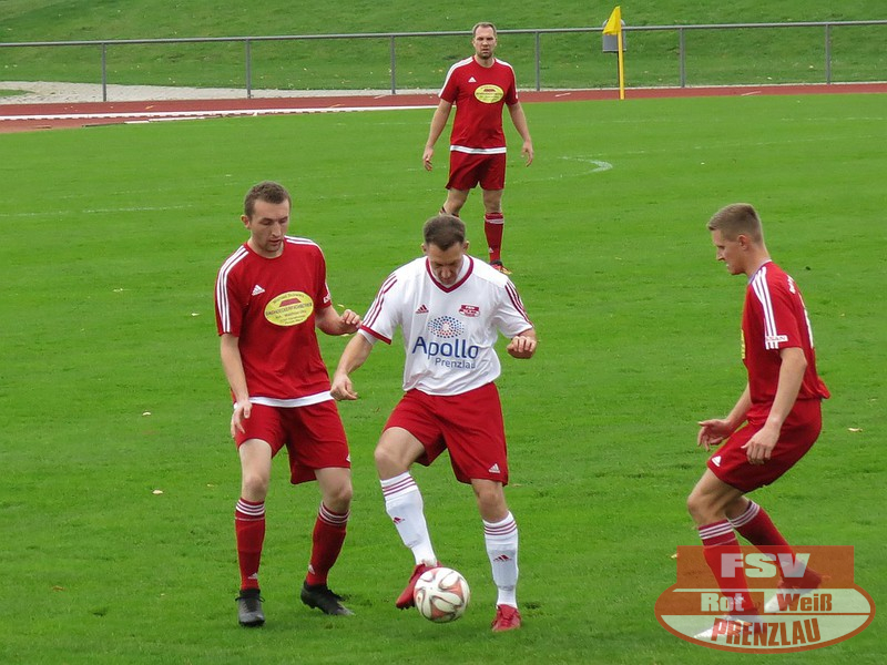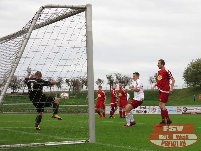 Halbzeit 2 war gerade angepfiffen, da wurde ein Handspiel auf der Prenzlauer Torlinie geahndet. Den fälligen Elfmeter nutzten die Gäste zur 2:1 Führung. Zwar erarbeitete unsere Mannschaft sich in der Folge eine Reihe von Torgelegenheiten, die aber wenn sie auf das Tor kamen, zu unpräzise abgeschlossen wurden. So konnte der Gästekeeper jedesmal erfolgreich eingreifen. In diesem recht ausgeglichenen Spiel hatte allerdings auch Parmen/Fürstenwerder eine Reihe von Möglichkeiten, das Ergebnis zu erhöhen, doch Udo Burmeister im Kasten konnte vorerst schlimmeres verhindern. Dann lief die letzte Minute der offiziellen Spielzeit und die Prenzlauer Bemühungen wurden doch noch belohnt. Michael Kraft köpfte den Ball aus 5 Metern in die Maschen. Wenigstens noch das Unentschieden - dachten alle. Doch wie als Kopie der ersten Halbzeit, fiel im Anschluss sofort der erneute Führungstreffer der Gäste. Konfusion im Prenzlauer Strafraum, die Abwehr brachte mehrfach den Ball nicht aus der gefährlichen Zone und Richard Schulz durfte Sekunden vor dem Abpfiff die Niederlage der Prenzlauer besiegeln.