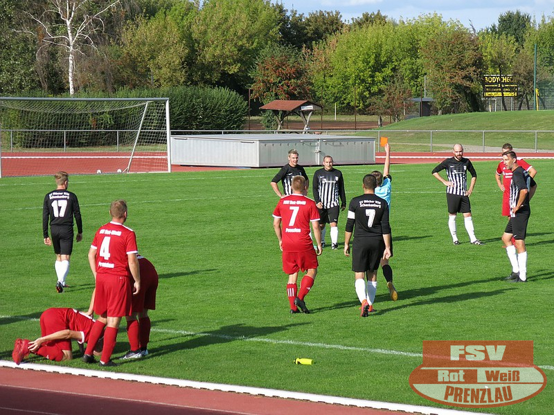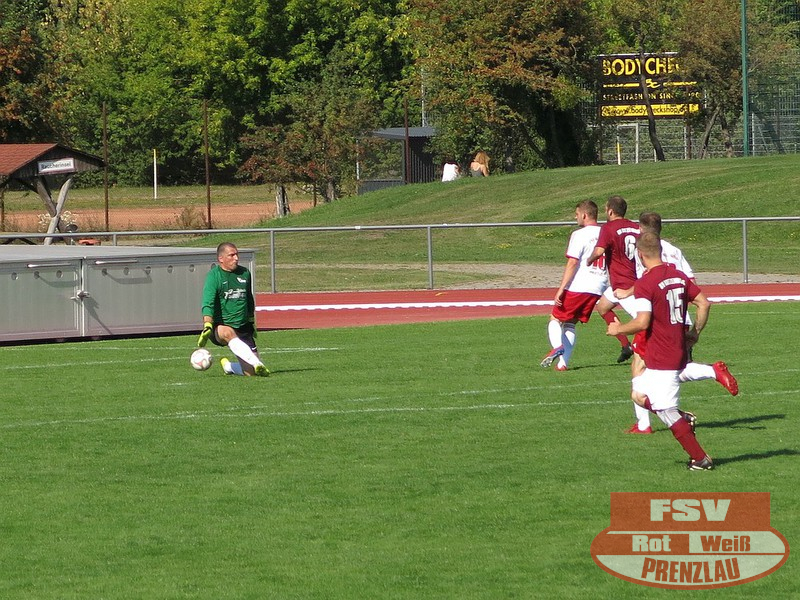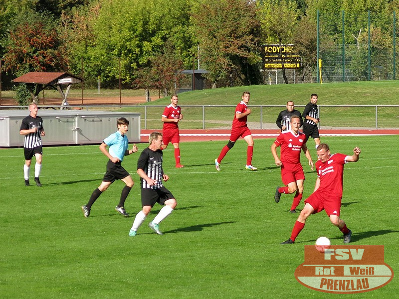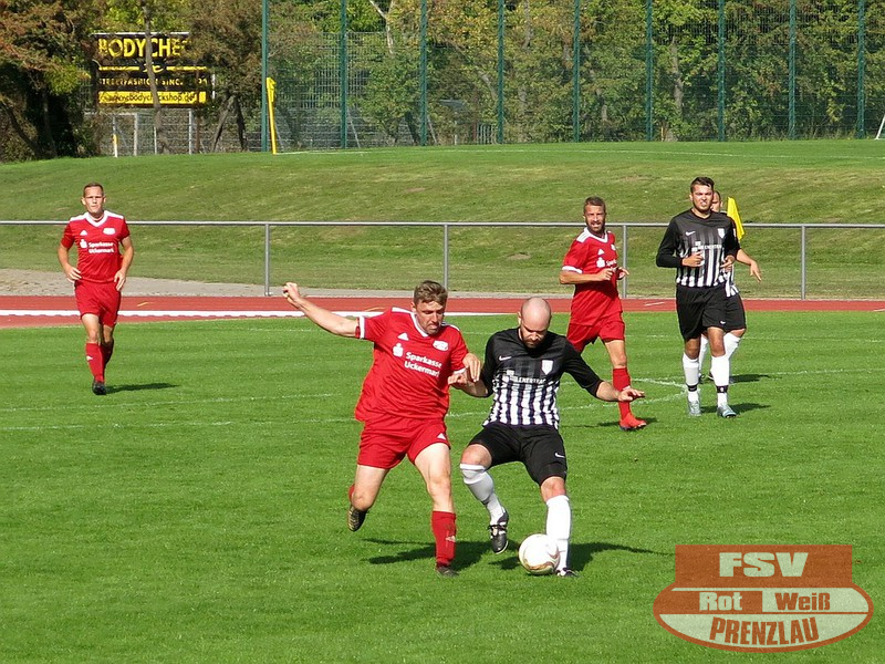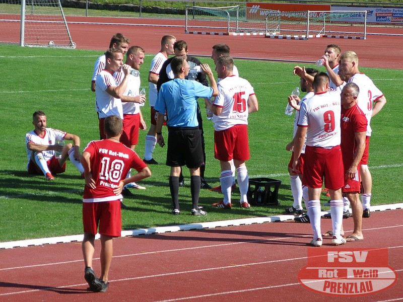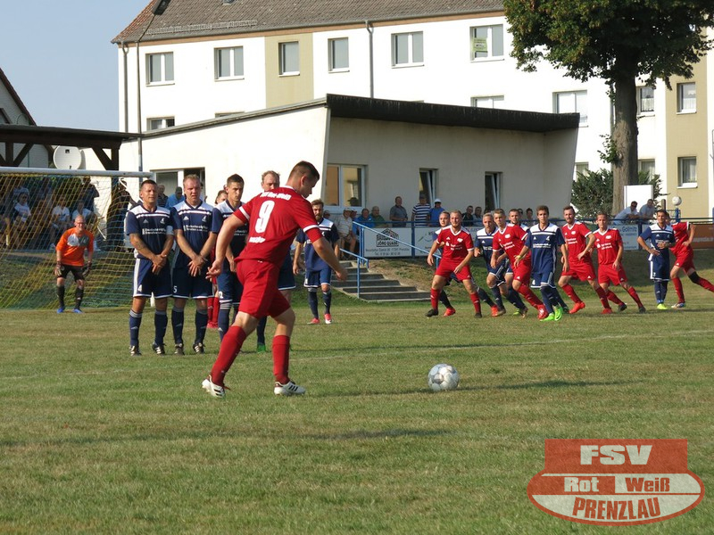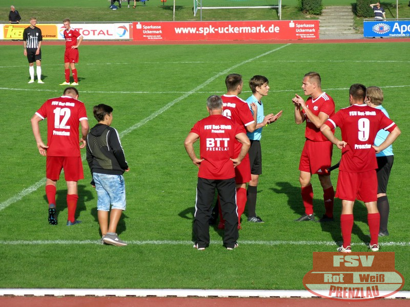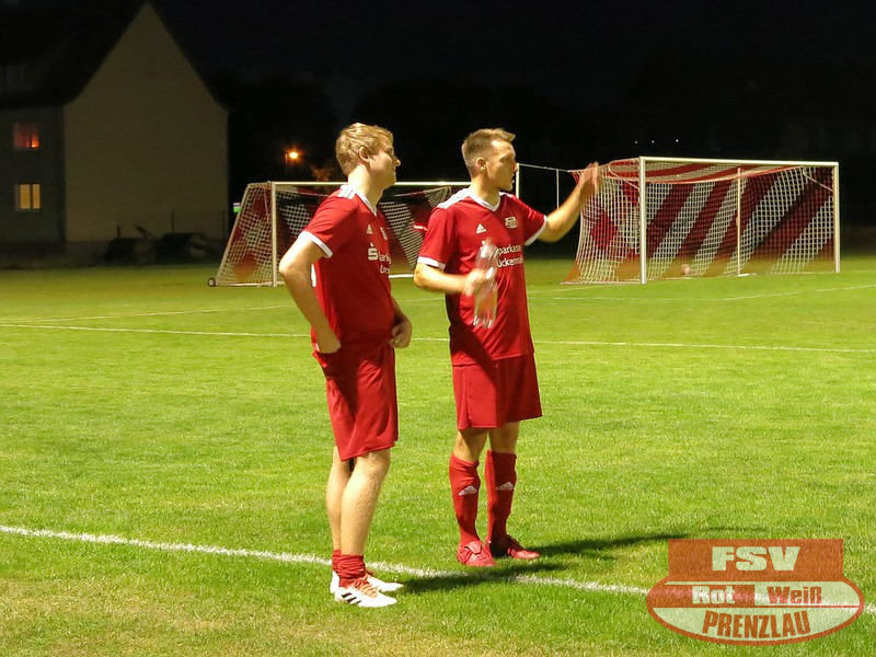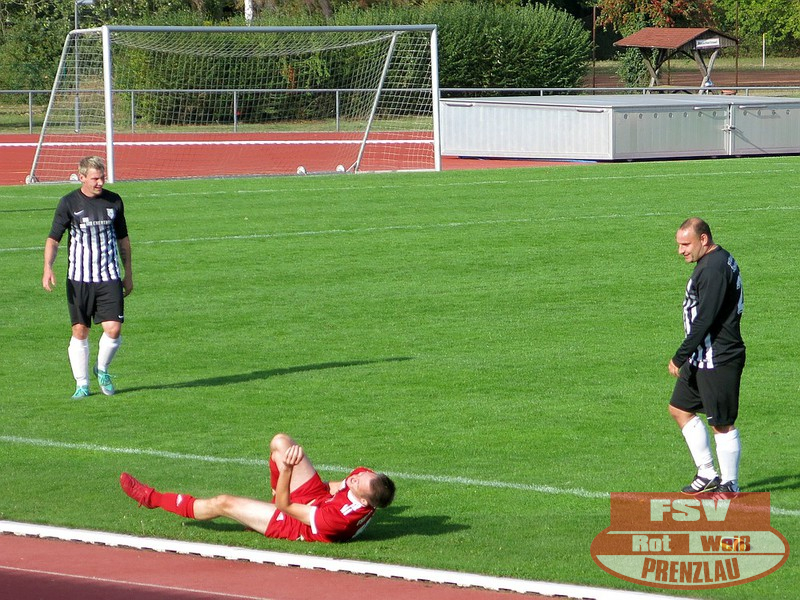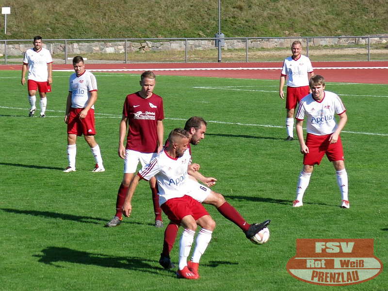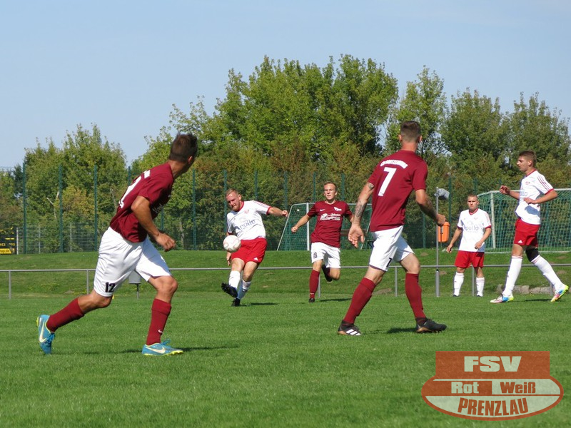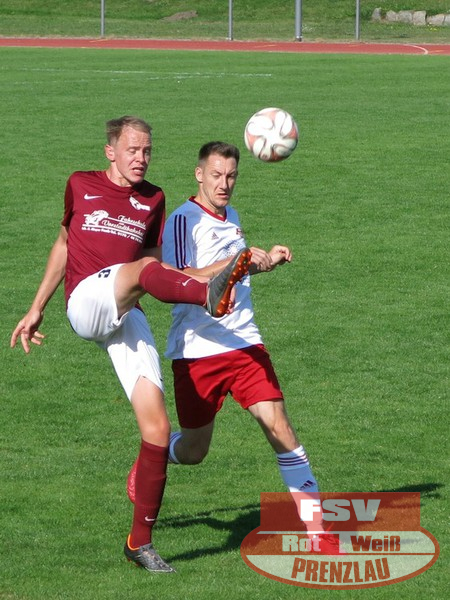Damit hätte vor dem Spiel wohl keiner gerechnet - der Aufsteiger schickt den amtierenden Meister mit einem 4:0 nach Hause. Nachdem das Remis am ersten Spieltag in Pinnow noch mit einer gehörigen Portion Glück und einer respektablen Abwehrleistung erkämpft wurde, sah das heute schon ganz anders aus. Bis auf einige wenige Situationen stand die Abwehr wieder ziemlich sicher und ließ die Boitzenburger Angreifer kaum zur Entfaltung kommen. Die Boitzenburger Elf war zwar durchaus bemüht, das Heft in die Hand zu nehmen und die Gestaltung des Spiels zu übernehmen, allerdings fehlte diesen Aktionen die Dynamik. Das Gefühl von echter Gefahr wollte nur phasenweise aufkommen. Das frühe 1:0 in der 5. Minute spielte dazu den Hausherren auch noch in die Karten. Dabei hätte es so eigentlich gar nicht fallen dürfen. Als Jeromé Schulz von rechts die gesamte Abwehr überflankte und der Ball beim freien Christoph Schmidt landete, entschied der sich nach kurzem Überlegen, einfach mal aus spitzem Winkel auf das Tor zu schießen. Es schien, als würde der Boitzenburger Torhüter die Situation nicht allzu ernst nehmen, doch der Ball landete, gar nicht mal scharf getreten, im Netz. Von da an konnten die Rot-Weißen aus sicherer Deckung heraus immer wieder zu Kontern ansetzen. Aus diesen Situationen heraus fielen dann in Halbzeit zwei auch die Tore bis zum 4:0. Auffällig dabei, alle drei erfolgreichen Gegenstöße wurden über die rechte Seite eingeleitet. In die Torschützenliste eintragen durften sich dabei Fabian Meylahn, Lucas Ulfig und Jeromé Schulz. Wer allerdings dachte, Boitzenburg würde irgendwann anfangen sich gegen die drohende Niederlage zu stemmen, sah sich getäuscht. Es gelang ihnen im Verlauf des Spiels immer weniger, einen Gang höher zu schalten. Und dann war da natürlich wieder der zur Zeit glänzend aufgelegte Prenzlauer Torhüter. Udo Burmeister reagierte mehrmals großartig, z.B. in der 63. Minute als drei Boitzenburger völlig frei an der Strafraumgrenze auftauchten und er das eigentlich sichere 3:1 verhinderte.