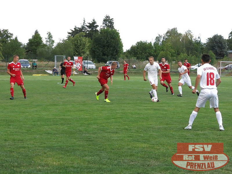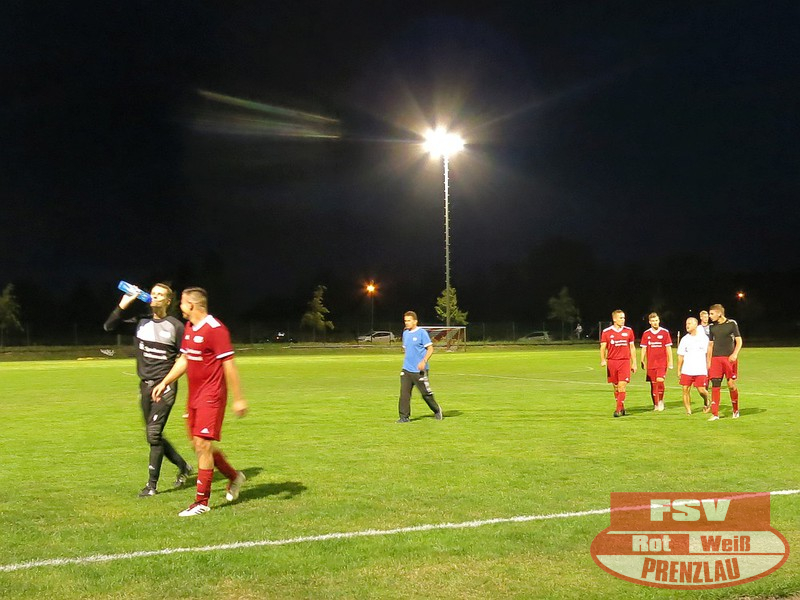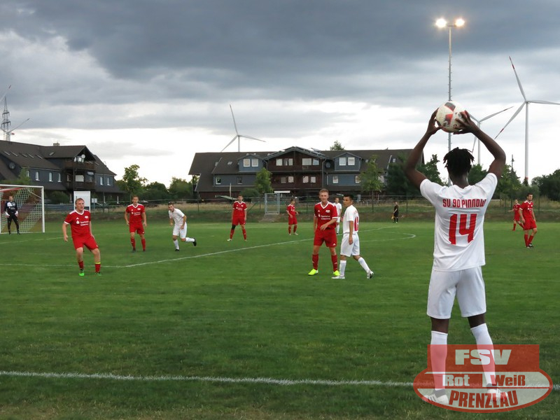Die Pinnower werden sich nach dem gestrigen Abendspiel gefragt haben, warum sie mit nur einem Punkt auf ihrem Konto den ersten Spieltag beendet haben. Die Antwort stand zwischen den Pfosten des Gästetores, Udo Burmeister hatte (wieder einmal) einen glänzenden Tag - respektive Abend - erwischt. Denn die dunkelgrauen Wolken über dem Pinnower Sportplatz standen symptomatisch für das Spiel der Prenzlauer. Die Prenzlauer Abwehr stand beinah permanent unter Druck. Selbst die Stürmer mussten häufig hinten aushelfen und kamen dadurch kaum dazu, für Entlastung zu sorgen. Wenn es mal nach vorn ging, dann meist durch lange Bälle aus der Abwehr heraus oder durch Einzelaktionen. Wirklich gefährliches kam dabei nicht heraus. Anders auf der anderen Seite, da wurde bei jeder Gelegenheit der Torabschluss gesucht oder durch Standards Gefahr erzeugt. Doch die Gästeabwehr, inklusive Torhüter Udo Burmeister, hielt dem Druck lange Stand, obwohl der Führungstreffer der Pinnower in der Luft lag. In der 39. Minute musste dann der Zufall den Pinnowern zu Hilfe kommen. Ein scharf getretener, halbhoher Schuss traf Sebastian Turowski kurz vor der Torlinie und wurde Richtung eigenes Tor abgelenkt. Da gab's nichts zu halten. Etwas unglücklich, aber auf alle Fälle die verdiente Führung für Pinnow. In der zweiten Hälfte änderte sich am Spielverlauf recht wenig, außer das die Männer der SpG Prenzlau/Dedelow noch weniger zu Entlastungsangriffen kamen. Doch einer davon sollte es in sich haben. Nach einem Eckball von rechts getreten, stieg Florian Meylahn am höchsten und köpfte den Ball unter die Latte - der Ausgleich praktisch aus dem Nichts. Die SpG hielt ihren Kasten mit vollem Einsatz bis zum Ende dicht, die mitgereisten Fans sehnten den Schlusspfiff herbei und nahmen den gewonnen Auswärtspunkt dankend mit nach Hause.