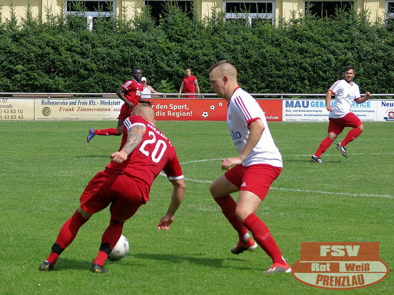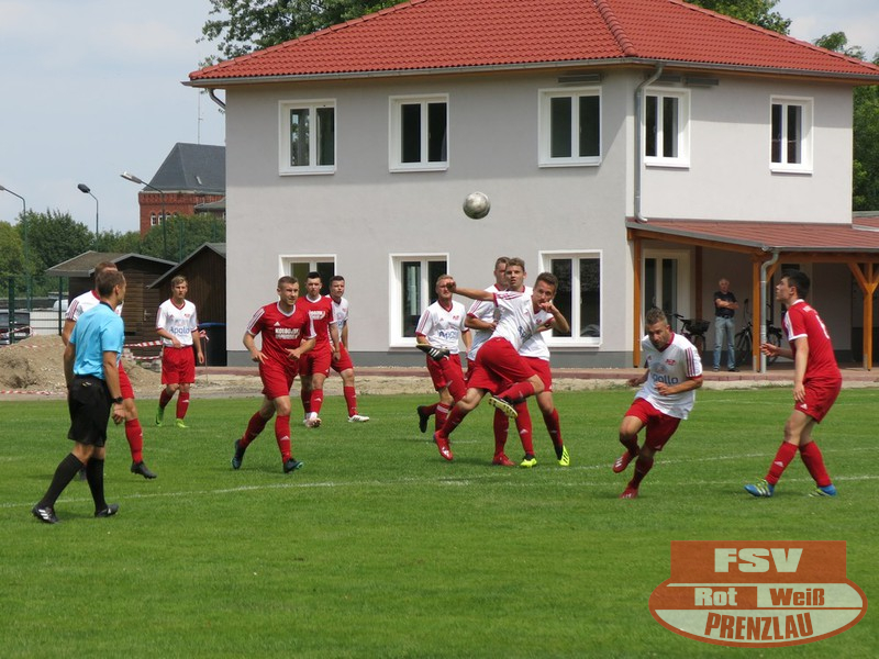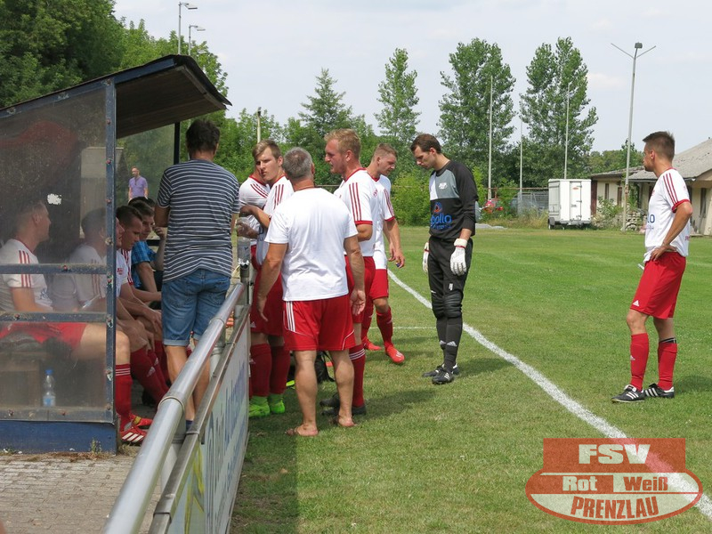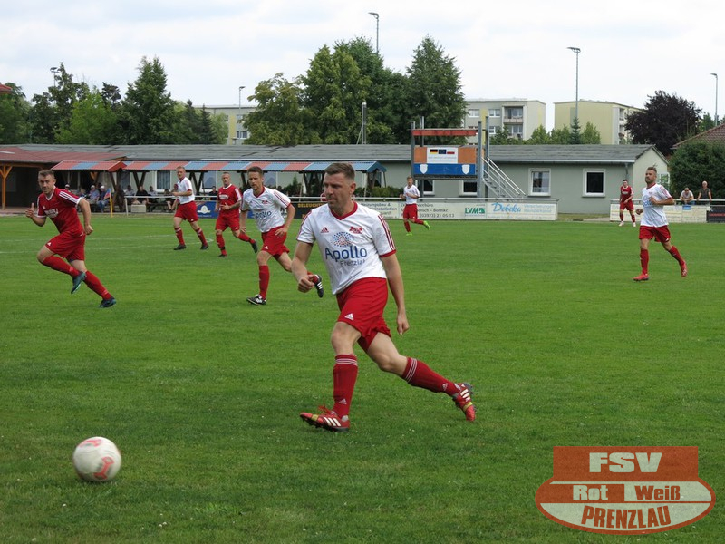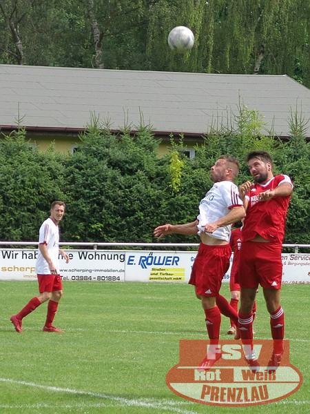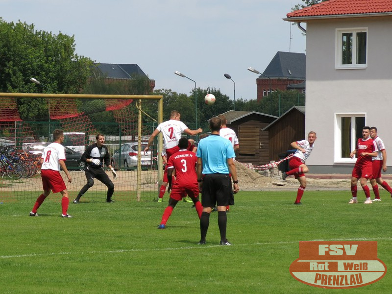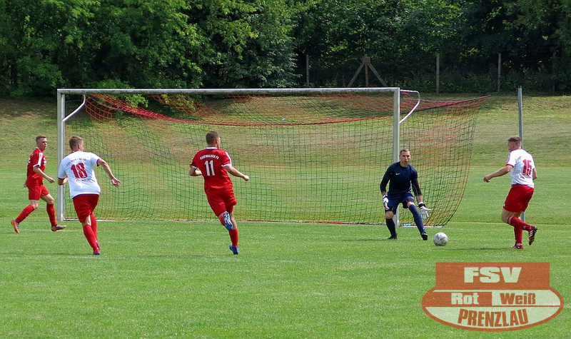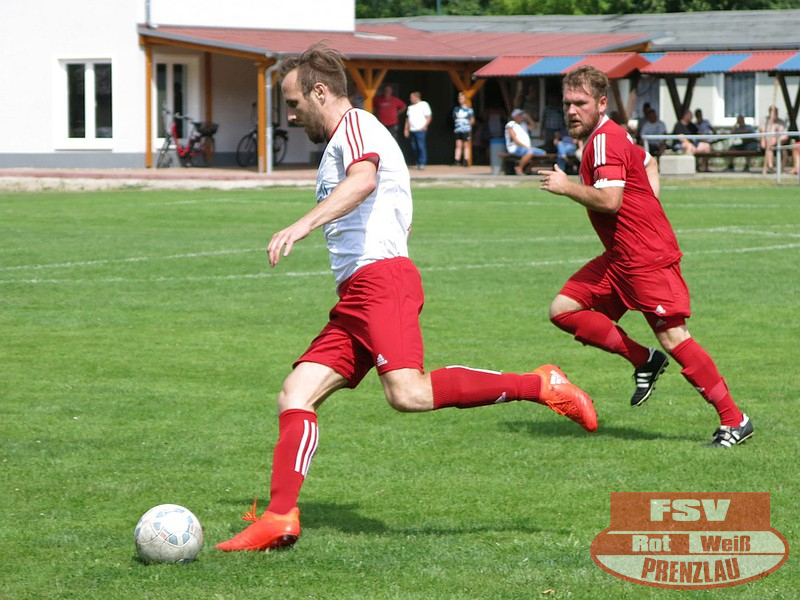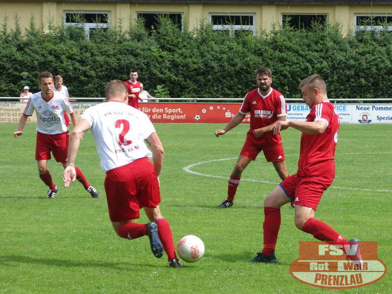 Heute gab es den Auftakt der Herrenmannschaft nach Bildung der Spielgemeinschaft mit dem Dedelower SV beim Testspiel in Pasewalk zu sehen. Der Pasewalker FV belegte in der abgelaufenen Saison in der Landesklasse M-V den 4. Platz. Zwar ging das Spiel mit 2:1 (1:0) verloren, aber der Aufsteiger in die Kreisoberliga hinterließ im ersten Match nach nur einer Woche gemeinsamen Trainings einen recht ordentlichen Eindruck. Der Pasewalker FV wie zu erwarten bestrebt, das Spiel zu bestimmen und auch mit etlichen Torchancen. Doch auch unsere Jungs mit sehr guten Torgelegenheiten, so z.B. in Minute 22, als Christoph Schmidt mit dem Ball am Fuß testete, wie lang das Pasewalker Spielfeld ist. Doch im einsamen Duell gegen den Torhüter strich der Ball links am Kasten vorbei. Eine Minute später fiel dann das Tor für Pasewalk durch einen strammen Fernschuss von halbrechts. Eine weitere dicke Chance dann kurz vor dem Pausenpfiff, als erst Jeromé Schulz und dann Fabian Meylahn den Ball am eigentlich schon geschlagenen Keeper vorbei nicht im Tor unterbringen konnten. In der zweiten Halbzeit war das Spiel sogar fast ausgeglichen. Tore fielen trotz weiterer Chancen auf beiden Seiten allerdings nur noch durch zwei Strafstöße. Erst verwandelte Michael Kraft seinen Elfer in der 67. Minute zum zwischenzeitlichen Ausgleich. In der 75. Minute ging allerdings Pasewalk wieder in Führung, nachdem Manuel Wilski seinen Gegenspieler im Strafraum von den Beinen geholt hatte.