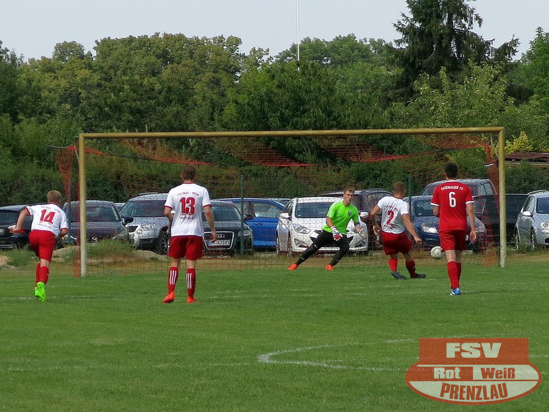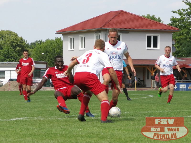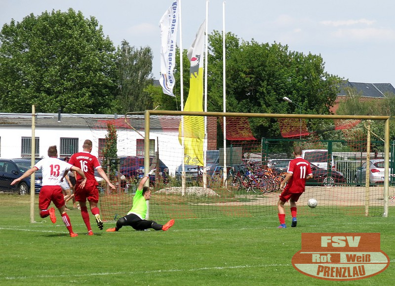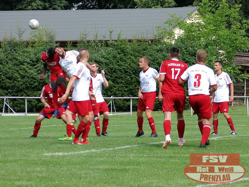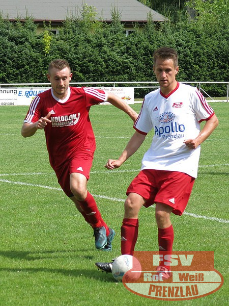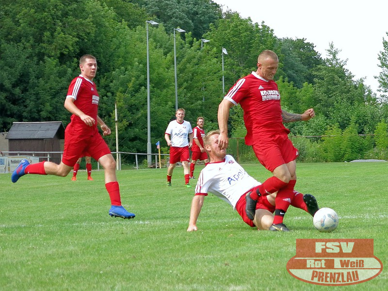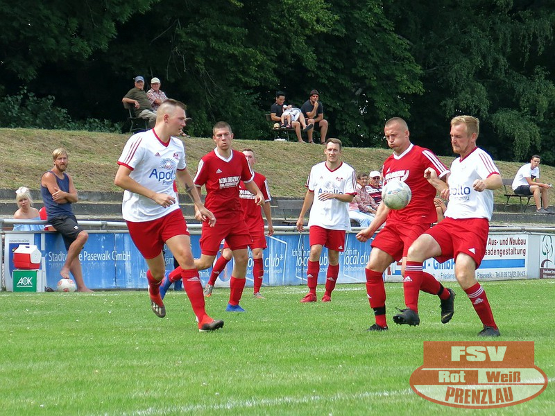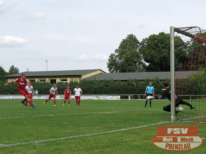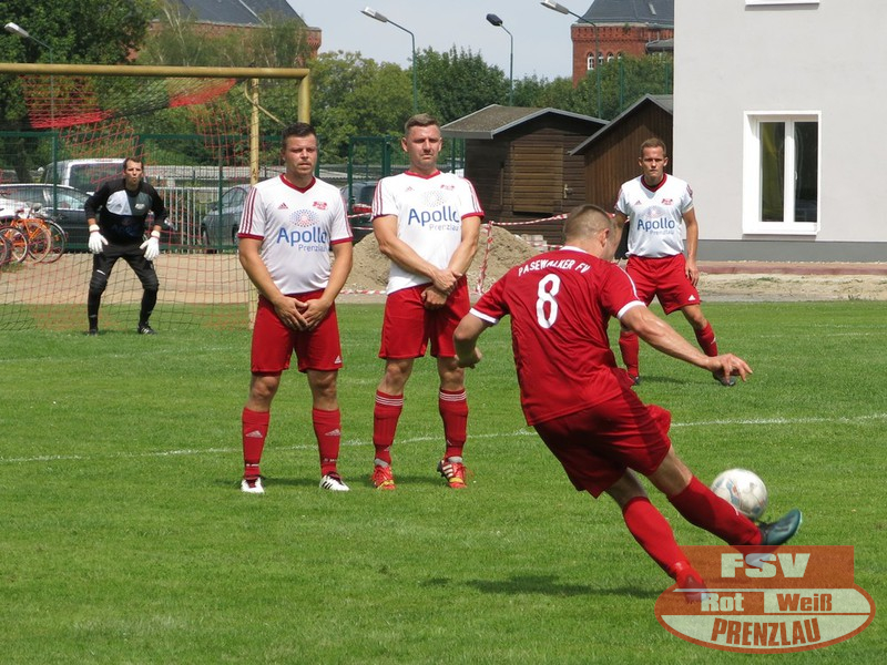 Heute gab es den Auftakt der Herrenmannschaft nach Bildung der Spielgemeinschaft mit dem Dedelower SV beim Testspiel in Pasewalk zu sehen. Der Pasewalker FV belegte in der abgelaufenen Saison in der Landesklasse M-V den 4. Platz. Zwar ging das Spiel mit 2:1 (1:0) verloren, aber der Aufsteiger in die Kreisoberliga hinterließ im ersten Match nach nur einer Woche gemeinsamen Trainings einen recht ordentlichen Eindruck. Der Pasewalker FV wie zu erwarten bestrebt, das Spiel zu bestimmen und auch mit etlichen Torchancen. Doch auch unsere Jungs mit sehr guten Torgelegenheiten, so z.B. in Minute 22, als Christoph Schmidt mit dem Ball am Fuß testete, wie lang das Pasewalker Spielfeld ist. Doch im einsamen Duell gegen den Torhüter strich der Ball links am Kasten vorbei. Eine Minute später fiel dann das Tor für Pasewalk durch einen strammen Fernschuss von halbrechts. Eine weitere dicke Chance dann kurz vor dem Pausenpfiff, als erst Jeromé Schulz und dann Fabian Meylahn den Ball am eigentlich schon geschlagenen Keeper vorbei nicht im Tor unterbringen konnten. In der zweiten Halbzeit war das Spiel sogar fast ausgeglichen. Tore fielen trotz weiterer Chancen auf beiden Seiten allerdings nur noch durch zwei Strafstöße. Erst verwandelte Michael Kraft seinen Elfer in der 67. Minute zum zwischenzeitlichen Ausgleich. In der 75. Minute ging allerdings Pasewalk wieder in Führung, nachdem Manuel Wilski seinen Gegenspieler im Strafraum von den Beinen geholt hatte.