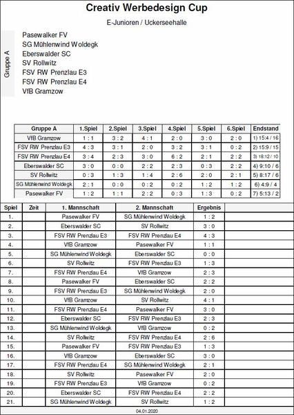 Die E-Junioren belegten beim "Creativ Werbedesign Cup" hinter dem VfB Gramzow die Plätze 2 und 3 (Fotos siehe unten).