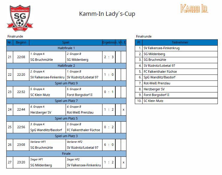 Die Damenmannschaft war zu Gast beim Kamm-Inn Lady's Cup. In einem Teilnehmerfeld von 10 Mannschaften belegten sie Platz 7. Das Vorrundenspiel gegen Forst Borgsdorf II konnten sie nach dreimaligem Rückstand noch mit 4:3 siegreich gestalten. Das Spiel um Platz 7 gewannen sie mit 2:1 gegen den Herzberger SV.