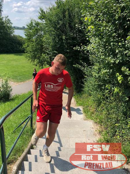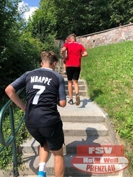 Am Freitag trafen sich die ältesten Junioren zum Trainingsauftakt am Vereinsheim. Nach der Begrüßung wurde die Trainingseinheit mit einem Lauf begonnen. Dieser beinhaltete kurze Intervalle und das Kennenlernen mit den „Kap-Treppen“. Im Anschluss erfolgte eine kurze Besprechung, in der die Trainer ihrer Erwartungshaltung an die Spieler formulierten.