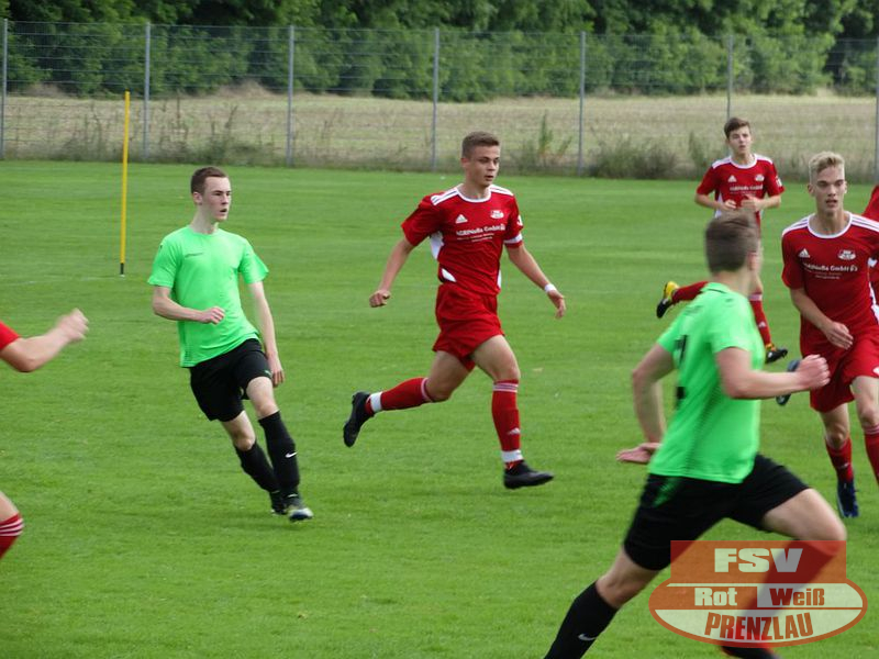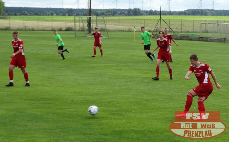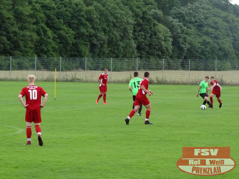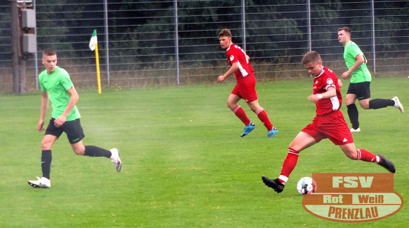 Nach der Pause und mit einigen Veränderungen versuchte unsere Mannschaft das Spiel zu drehen. In der 46. Minute spielte Marvin Behnke einen guten Diagonalball auf Luis Hötzmann. Dieser setze sich durch und schloss ab. Der Torwart, konnte den Ball nur zur Ecke abwehren. Aus dieser entsprang nichts. In der 49. Minute ein erneuter langer Ball der Heimelf. Stürmer Erik Krüger setzte sich im 1 zu 1 gegen die Innenverteidiger durch schob zur Vorentscheidung ein. 3:0 nach 50 Minuten, puuuh. Aber unsere Jungs ließen sich nicht hängen und versuchten weiterhin nach vorne zu spielen. Eddie Naujoks setzte sich 5 Minten später auf der linken Seite stark durch, seine Hereingabe konnte Moreno Klünner leider nicht verwerten. Hier das 3:1 und es wäre genügend Zeit gewesen die Partie zu drehen. Eine weitere Möglichkeit hatte Joell Felix, aber sein Schuss aus 20 Metern war sichere Beute des Keepers. In der Folgezeit flachte die Begegnung ab. Prenzlau zwar mit mehr Ballbesitz aber ohne nennenswerte Chancen. In den letzten 10 Minuten verpasste es die Heimelf, das Ergebnis weiter auszubauen. 2-3 gute Möglichkeiten wurden teils kläglich vergeben.