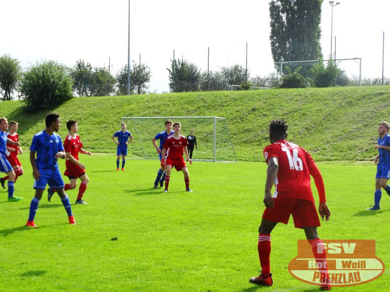 Die Voraussetzungen waren denkbar schlecht, 8 Spieler fehlten dem Trainerteam (Glasow, Zingelmann, Tronnier, Güldenpfennig, Nguyen, Felix, Eckert, Brose). Es wurde sogar erneut Unterstützung der B-Junioren benötigt. Mit Noah Busch half erneut ein Spieler aus dem jüngeren Jahrgang aus. Die Zielstellung war dennoch klar, aus einer kompakten Abwehr sollten Chancen kreiert werden und möglichst die 3 Punkte im heimischen Uckerstadion verbleiben. Dies gelang unseren Junioren mit einer überzeugenden Vorstellung. Gerade die ersten 20 Minuten waren die besten der noch jungen Spielzeit. Zielstrebig und mit viel Mut wurden reihenweise Chancen erspielt. Bereits in der zweiten Spielminuten vergab Luca Melüh eine gute Chance nach Vorarbeit von Noah Busch. Weitere gute Möglichkeiten wurden durch Kühn und Naujoks nicht verwertet. In der 30. Minute dann ein starker Sololauf von Eddie Naujoks. Er setzte sich mehrfach stark durch, seine scharfe Hereingabe von der rechten Seite konnte Anton Jahn zur längst überfälligen Führung verwandeln. Mit diesem Ergebnis ging es in die Halbzeit.