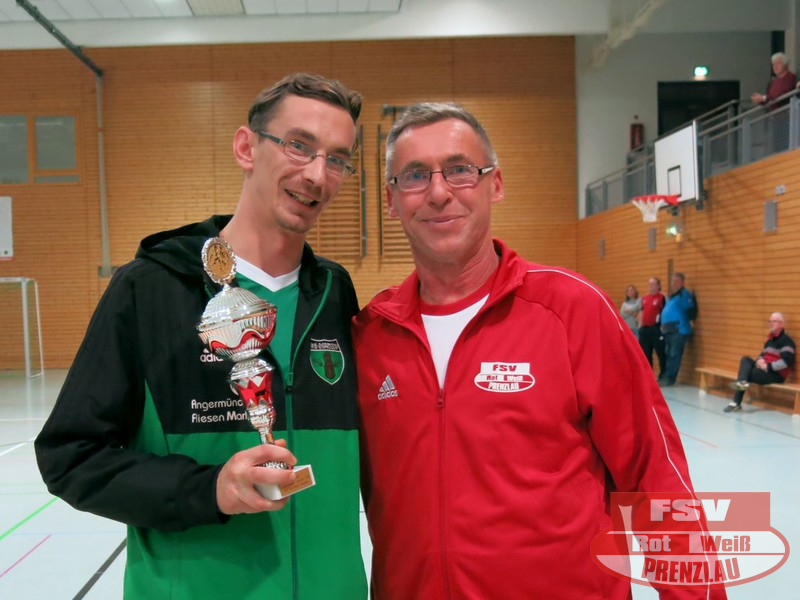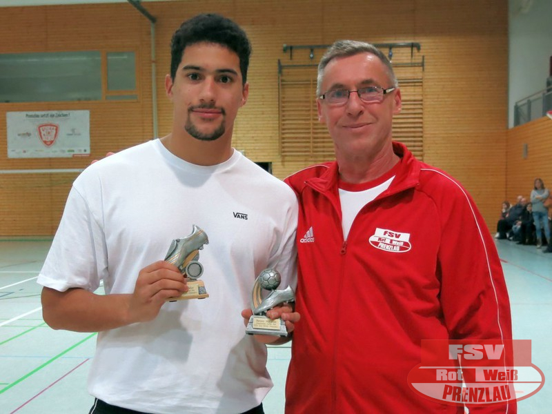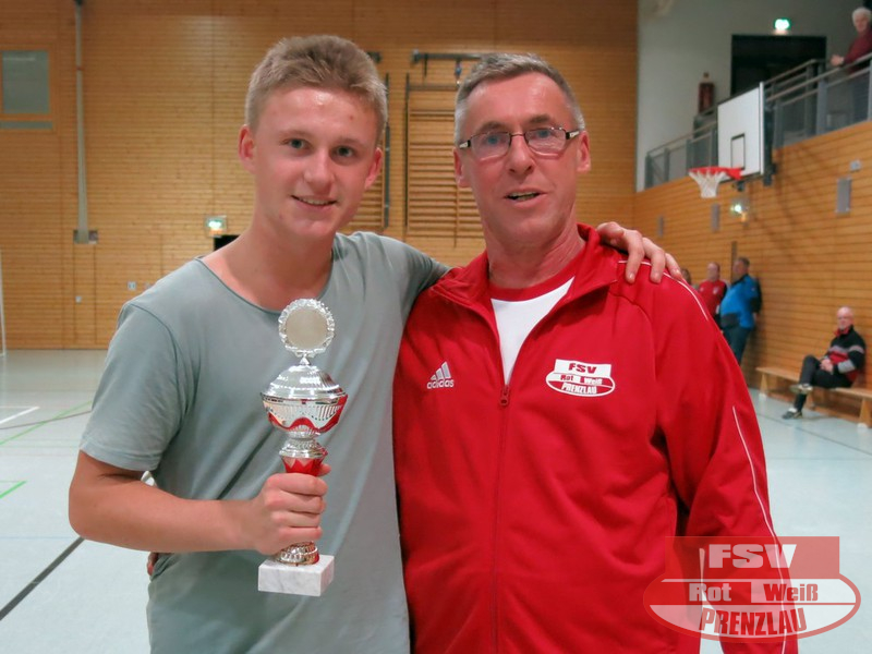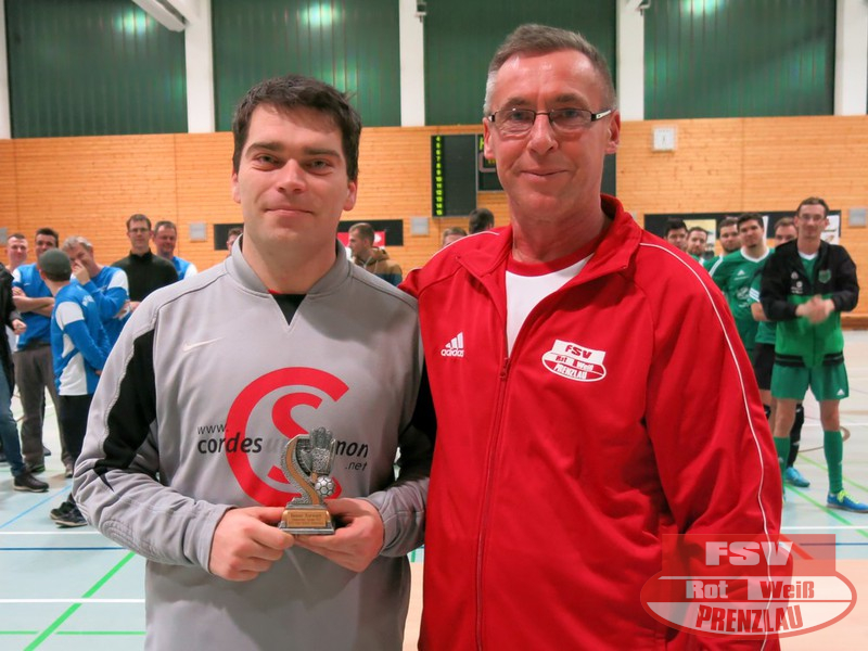 Weitere Trophäen gab es für einen Prenzlauer Spieler - Miguel Hartwig erhielt jeweils die Auszeichnung für den besten Torschützen und für den besten Spieler. Als bester Torwart wurde nach auffallend guter Vorstellung einstimmig Maik von Palubicki vom BSV Prenzlau geehrt.