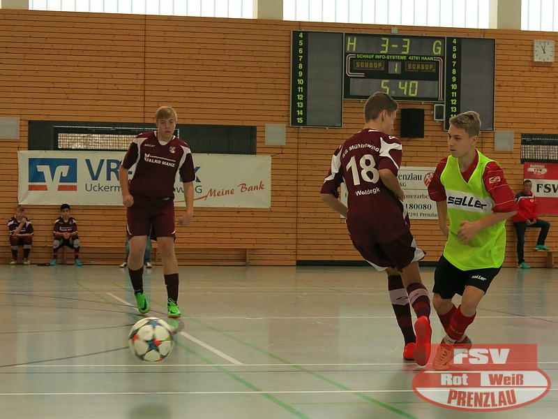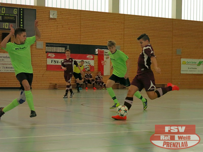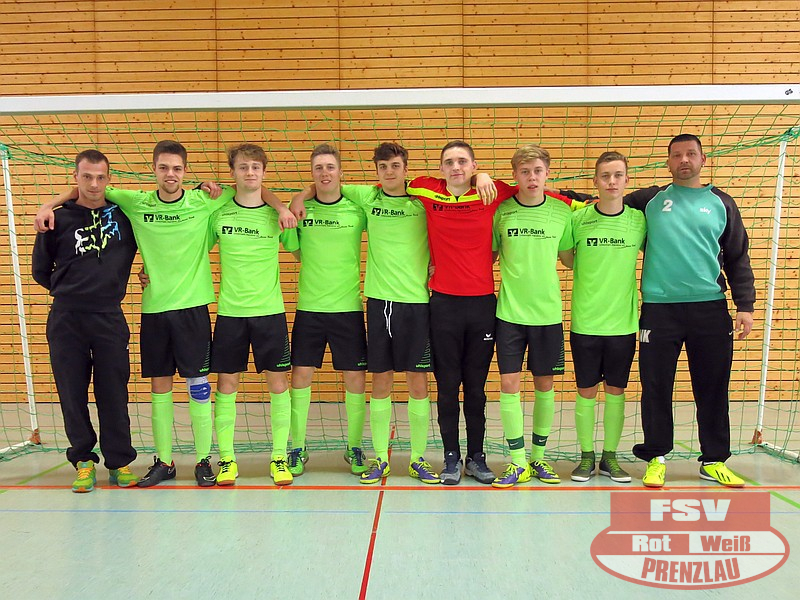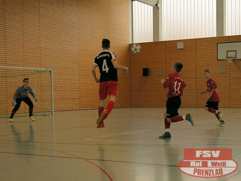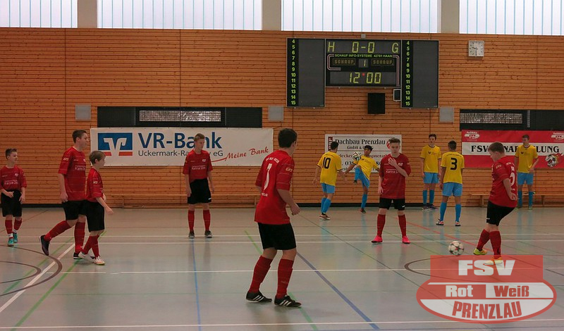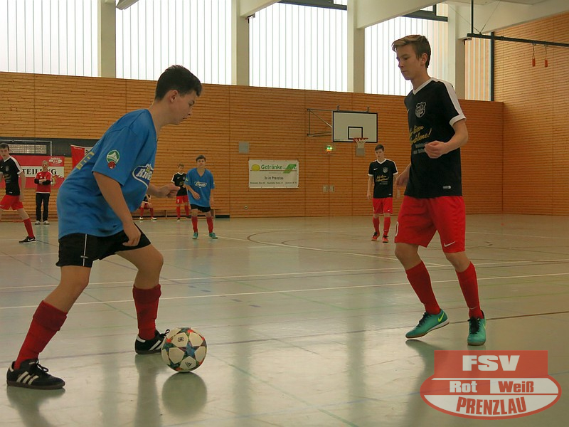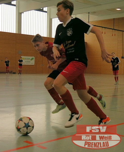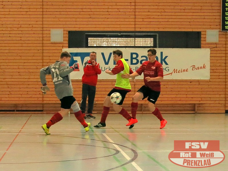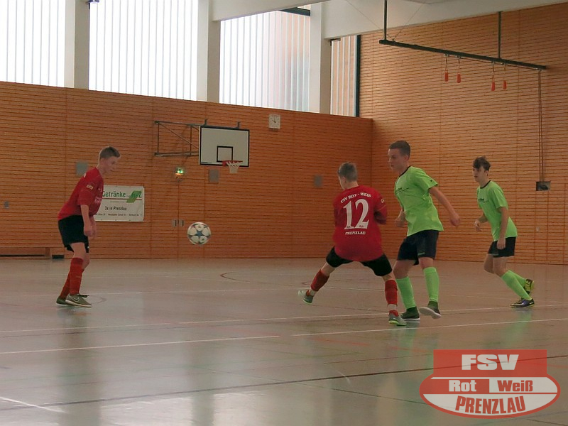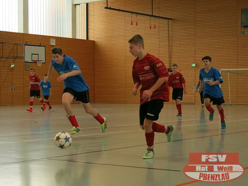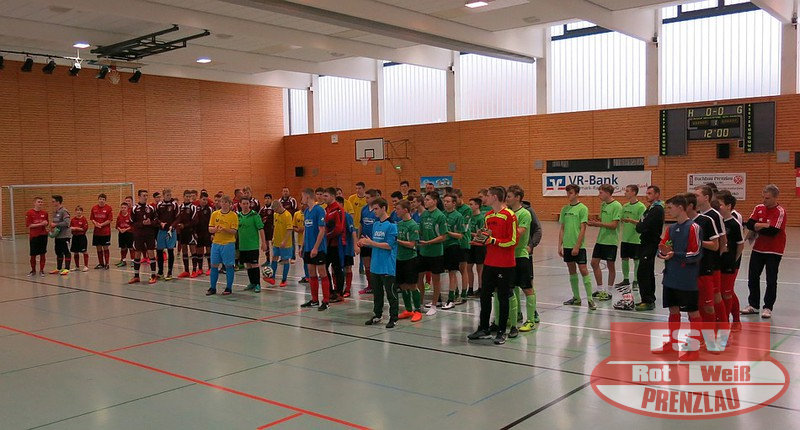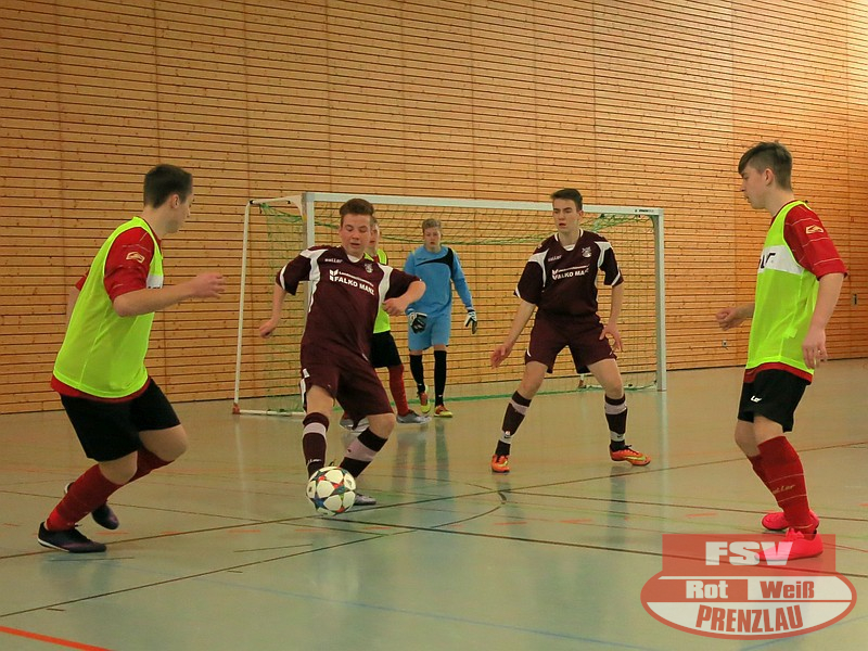 Beim Hallenturnier am 07.01.2017 in der Uckerseehalle in Prenzlau hatten die B-Junioren von Rot-Weiß ihren ersten Auftritt unter Wettkampfbedingungen. Eingeladen waren vom FSV sechs weitere Mannschaften der Altersklasse A/B aus Gramzow, Pasewalk, Schwedt, Storkow/Vietmannsdorf, Templin und Woldegk.