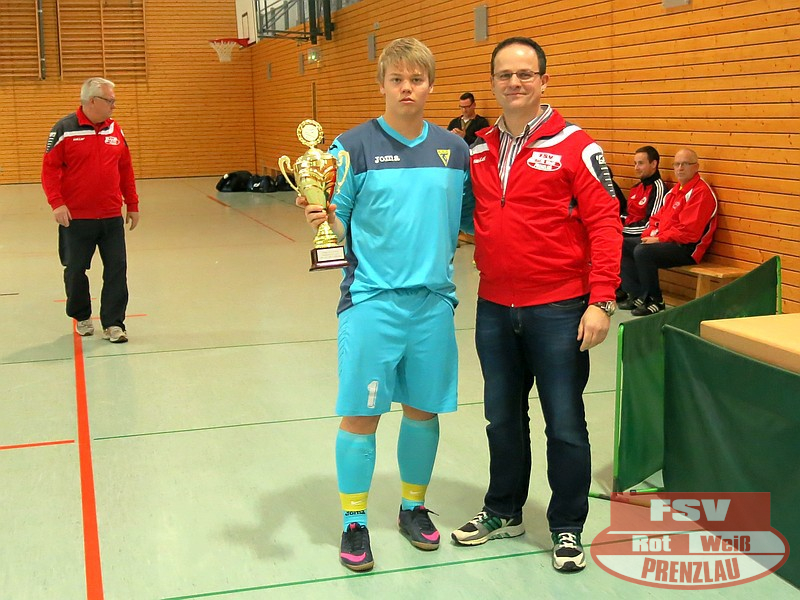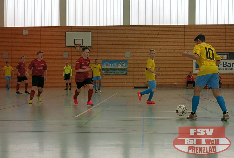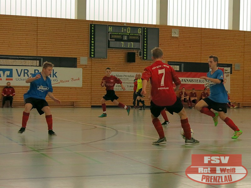 Die Prenzlauer stellten zwei mit Spielern der C-Junioren ergänzte Teams auf. Dadurch sollten alle Spieler während des Turniers möglichst oft zum Einsatz kommen, um so wichtige Spielpraxis sammeln zu können. Der Nachteil in Sachen Athletik und Spielerfahrung war dann aber am Endergebnis deutlich ablesbar. Beide Prenzlauer Mannschaften belegten in ihren Vorrundengruppen den letzten Platz und machten anschließend in der Endrunde den Kampf um Platz 7 unter sich aus. Hier gewann Prenzlau 1 mit 2:0 gegen die zweite Vertretung.