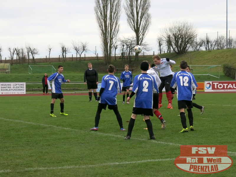 Nach dem deutlichen 9:0-Sieg am letzten Spieltag des Jahres überwintern die B-Junioren ohne Niederlage und mit nur einem Unentschieden auf Rang 1 der Tabelle. Als härteste Konkurrenten folgen auf Platz 2 mit drei Punkten Rückstand die Blau-Weißen aus Gartz. Mit 4 Zählern Abstand liegt die SpG Schönow/Passow auf Rang 3.