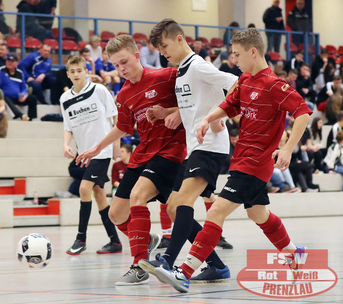 In der B-Gruppe wurde der FC Schwedt als höchstklassiges Team des Neunerfeldes seiner Favoritenrolle gerecht. Ohne Punktverlust und Gegentreffer landete er auf dem ersten Platz. Blau-Weiß Gartz sicherte sich mit sechs Punkten den Halbfinaleinzug und war dort der Gegner für Rot-Weiß Prenzlau. Beide Teams kämpften vehement, doch ein Tor fiel in regulären zehn Minuten nicht, also musste die Entscheidung vom Punkt aus fallen. Gartz begann und traf, Rudi Moldenhauer glich aus. Das 2:1 der Blau-Weißen egalisierte Justin Tronnier. Dann schlug die Stunde des Prenzlauer Keepers Florian Sachse, der den Schuss von Johannes Wegner parierte. Prenzlaus Michal Kruszynski stellte dann mit seinem Treffer den 3:2-Sieg her. Der FC Schwedt ließ auch im Halbfinale gegen die SpG Schönow/Passow nichts anbrennen und gewann mit 5:0. Den dritten Platz sicherte sich Blau-Weiß Gartz nach einem 4:1-Erfolg gegen Schönow/Passow. Im Endspiel konnte Florian Sachse den ersten Oderstädter Torschuss entschärfen, aber kurz darauf fiel die 1:0-Führung, die Rudi Moldenhauer aus spitzem linken Winkel zum 1:1 ausglich. Nach zwei Schwedter Treffern schien die Vorentscheidung gefallen zu sein, doch Moldenhauer verkürzte noch einmal auf 2:3. Dabei blieb es jedoch.