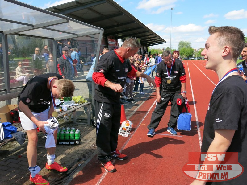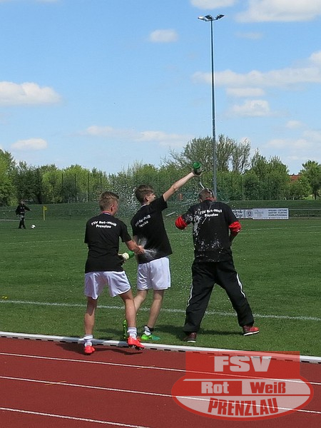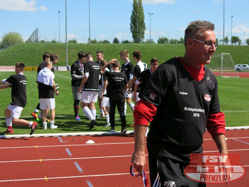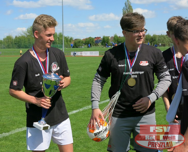 Nach dem 6:0-Punktspielsieg gegen Grünow vor drei Tagen und der deutlichen Tabellenführung in der Kreisliga, hatten die meisten wohl auch klare Kräfteverhältnisse beim Pokalfinale erwartet. Aber nichts da, bei Prenzlau fehlte jeglicher Biss und die Intention das Finale unbedingt gewinnen zu wollen war nicht erkennbar. Anders dagegen Grünow - hier spürte man, dass sie sich für den heutigen Tag etwas vorgenommen hatten. Sie gingen von Anfang an wesentlich engagierter zur Sache und so entwickelte sich ein recht ausgeglichenes Spiel - vielleicht mit den besseren Chancen sogar auf Grünower Seite. So hatte Prenzlau Glück, dass in der ersten Halbzeit nicht Elfmeter gegen sie gepfiffen wurde und in Halbzeit zwei traf ein Grünower Schuss die Prenzlauer Torlatte. Prenzlau konnte lediglich in der 31. Minute durch Rudi Moldenhauer die Grünower Führung ausgleichen, dass allerdings mit einem fulminanten Schuss ins Grünower Gehäuse. Da konnte auch der auffallend gute Torhüter der Grünower nichts mehr ausrichten. 1:1 blieb's bis zum Ende der regulären 80 Spielminuten, also zwei mal 10 Minuten Verlängerung. Hier dann aber plötzlich ein anderes Bild. Nach der schnellen Führung durch Ole Czeslick in der 82. Minute Prenzlau fast so dominant, wie von Beginn an eigentlich erwartet. Und so machte Prenzlau durch einen weiteren Treffer von Ole und einen von Lucas Zühlke den 4:1-Sieg und damit den Gewinn des Kreispokals fest. Glückwunsch dafür! Und spannend war es auf alle Fälle.