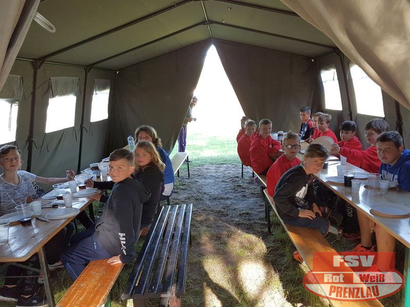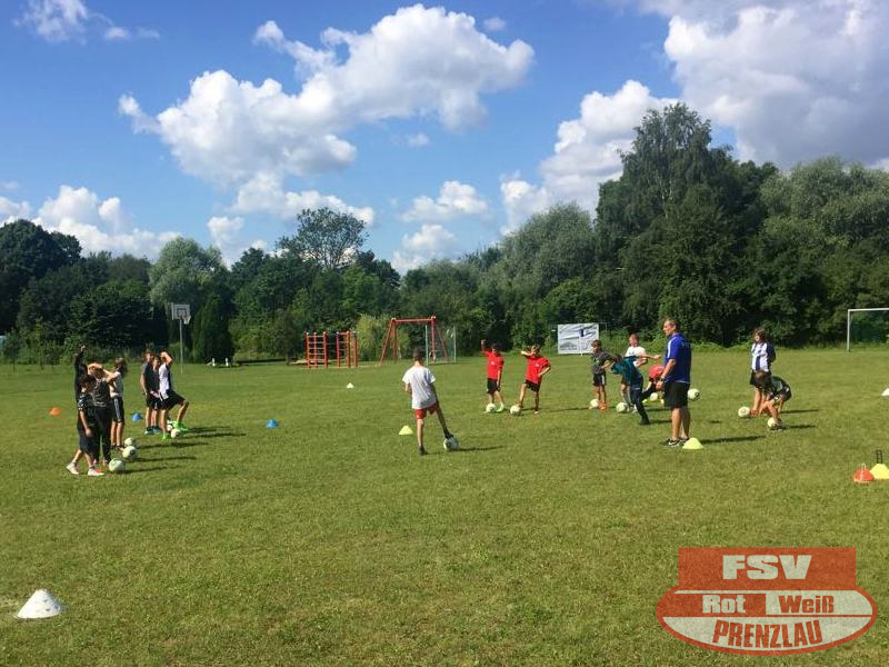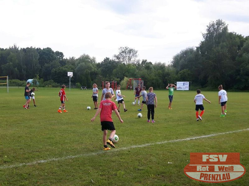Als Saisonabschluss und gleichzeitig als Vorbereitung auf die kommende Saison, dann als D2-Junioren, fuhren die E-Junioren von Rot-Weiß Prenzlau mit den gleichaltrigen Spielern von Eintracht Göritz in ein gemeinsames Trainingslager nach Warnitz. Neben der Verbesserung der fußballerischen Fähigkeiten der jungen Kicker, wurde aber auch das Miteinander in der Freizeit groß geschrieben. So hatten die Kinder ihren Spaß beim gemeinsamen Rumtollen, beim Baden im nahe gelegenen Uckersee und beim abendlichen Grillen. Fleißige Unterstützung wurde dabei von den Eltern, die mit ins Trainingscamp angereist waren, geleistet