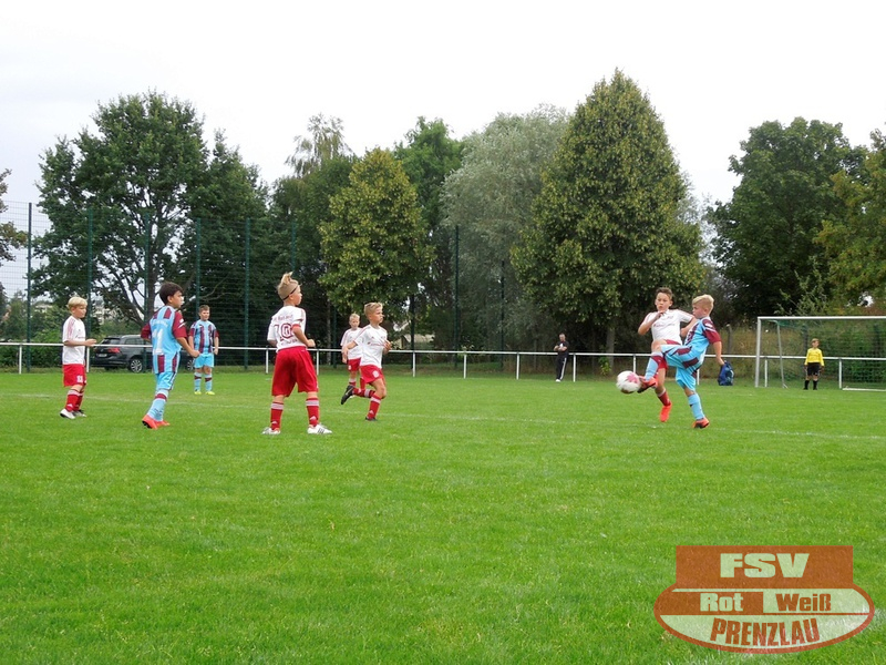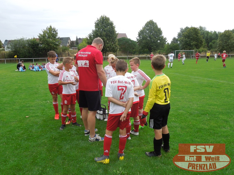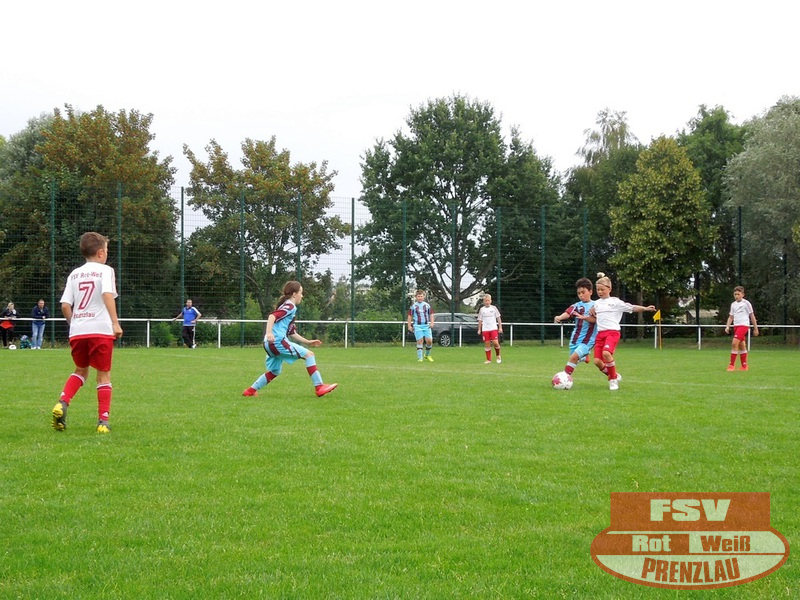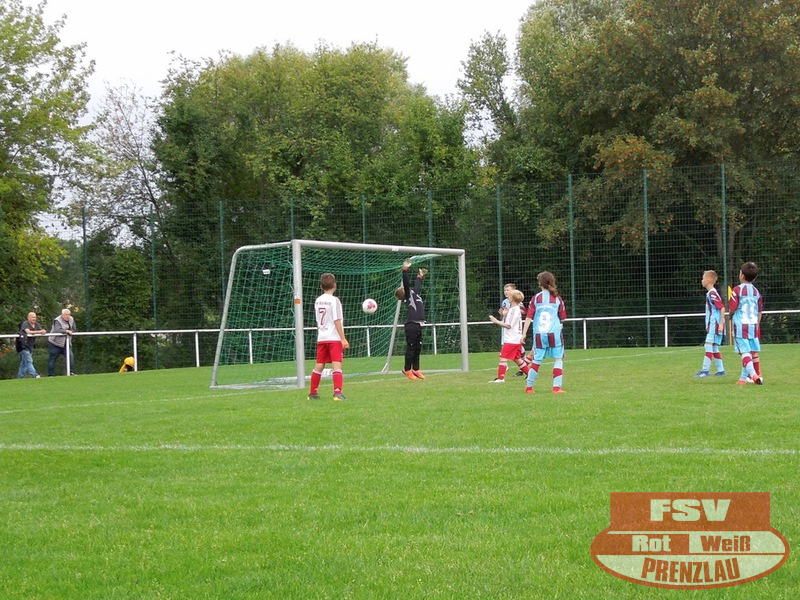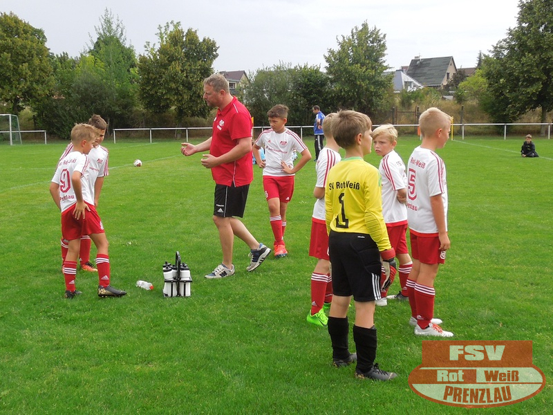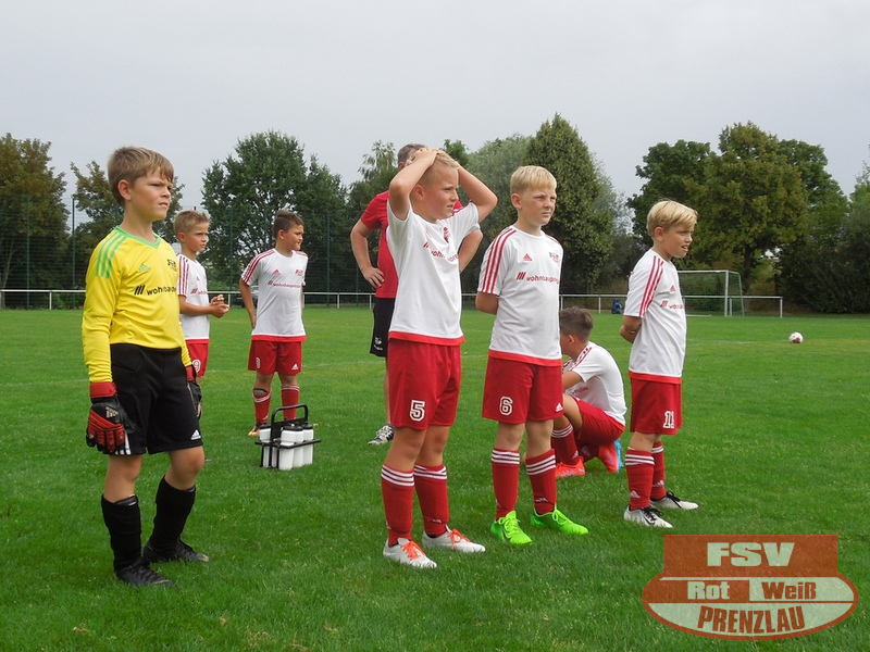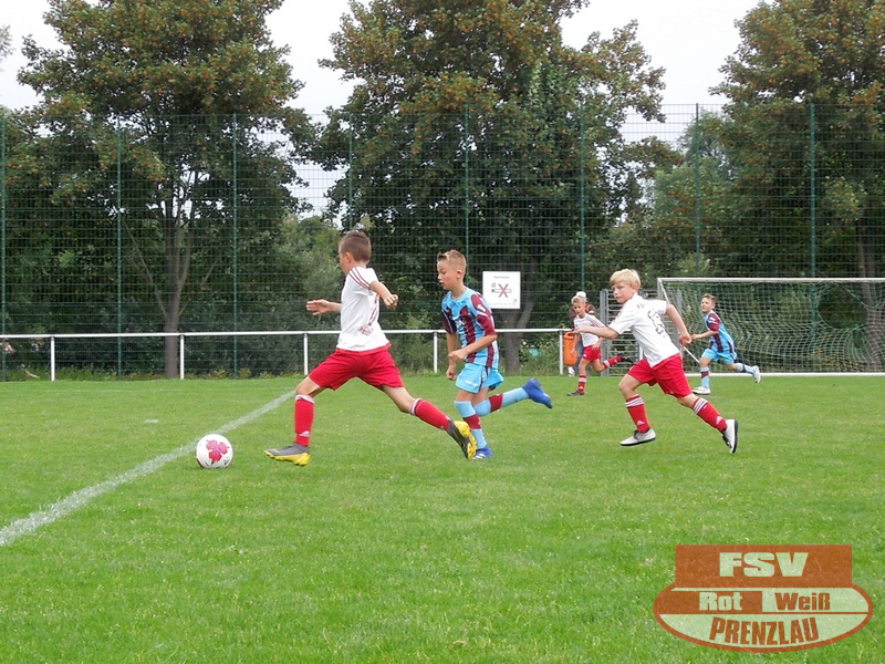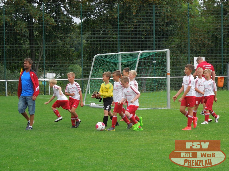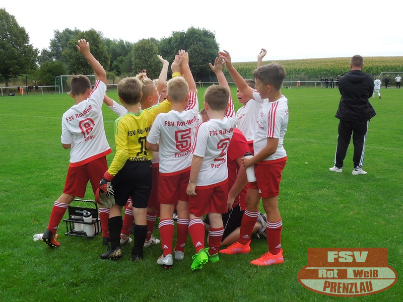 Am 18.08. hatte unsere E3 ihr erstes Heimspiel. Zu Gast im heimischen Uckerstadion war die SpG Göritz/Schmölln E2. Beide Mannschaften konnten im ersten Spiel jeweils die vereinsinternen Duelle für sich entscheiden. Bei unseren Rot-Weißen waren außer H.Kopitzki alle an Bord, zusätzlich unterstützte C. Schröder (E1), vielen Dank dafür. Wie auch im ersten Spiel kamen unsere Jungs schon in der ersten Minute zum Torerfolg, schneller Angriff über die rechte Seite, tolle Hereingabe von Luka und Arjen musste nur den Fuß hinhalten. Trotz dieser frühen Führung konnte Prenzlau nicht nachlegen und so kam auch Göritz mehrmals vor das Rot-Weiße Gehäuse. Aber mit Moritz im Kasten hatten die Rot-Weißen einen sicheren Rückhalt. Und so dauerte es bis zur 10. Minute, als Luka wieder durch seine Schnelligkeit auf der rechten Seite durchmaschierte und das 2:0 erzielte. Jetzt waren unsere Jungs richtig heiß und machten in der Folge 3 weitere Tore durch Luka. Etwas leichtsinnig wurde ein Abspiel in die Füße des Gegners gespielt, dieser fackelte nicht lange und schoss das 5:1. Noch vor dem Halbzeitpfiff konnten unsere Jungs auf 6:1 erhöhen.