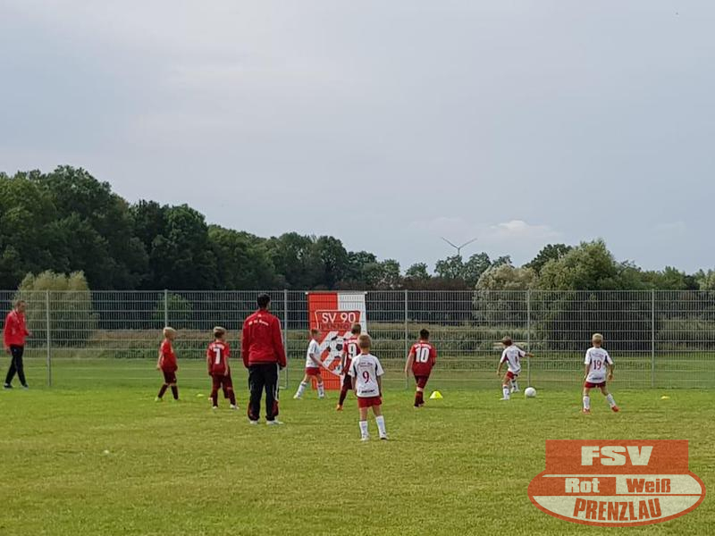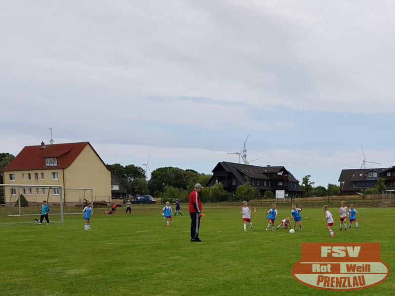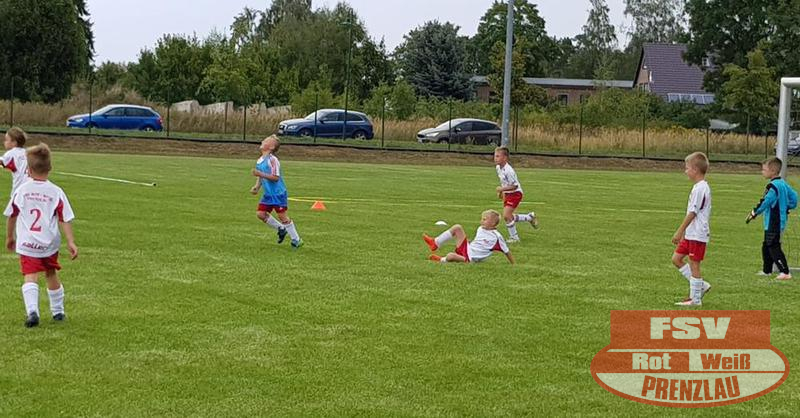 Die Sommerpause bei den anderen F-Junioren ist vorbei und so ging es am Sonntag zum Turnier nach Casekow. Dort wurde dann auf 2 Plätzen gespielt. Als erstes ging es gegen die erste Garde vom FC Schwedt 02 F1. Dort kam die erste Mannschaft von Rot-Weiß Prenzlau zu einem 2:2. Dieses Ergebnis spiegelte das auf Augenhöhe geführte Spiel wieder. Das 2. Spiel gegen Gramzow gewannen die Rot-Weißen mit 9:0.