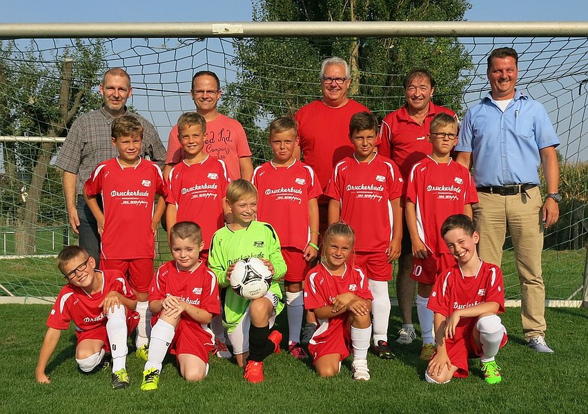 Unsere erste Mannschaft: E-Junioren mit Betreuern bei ihrem ersten Training